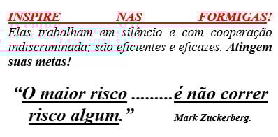 Após observar como as formigas se comportam, podemos tirar uma grande lição! Aprendemos que diante de qualquer situação adversa: