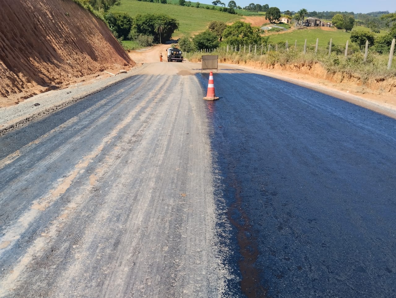 Conforme informações da empresa ZAG e Administração municipal, mesmo neste período chuvoso e falta de material por parte de fornecedor, o maquinário abre frente de trabalho a cada dia, já são mais de seis quilômetros com massa asfáltica, faltando o acabamento nas laterais, o qual está sendo executado por empresa terceirizada, e mais de dois quilômetros já imprimados esperando a chegada da massa para também ser pavimentado, mesmo com dias de chuva e atrasos de entrega de material por fornecedor, as obras estão se desenvolvendo bem, os responsáveis estão trabalhando para sanar os problemas, e a projeção é de entrega desta pavimentação ainda em 2023.