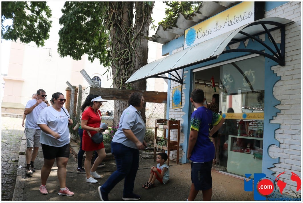 A passagem pelo Bairro Brejo Alegre revelou a participação significativa deste bairro na formação da cidade. O desembarque na Avenida Dr. Américo Luz marcou o início de uma exploração a pé pela Igreja Matriz e Cruzeiro, pontos turísticos que ganharam vida com as narrativas de Fernando. O encerramento do tour ocorreu na Casa do Artesão, onde os participantes tiveram a oportunidade de apreciar e adquirir peças únicas do artesanato local, confeccionadas por talentosas artistas da comunidade.