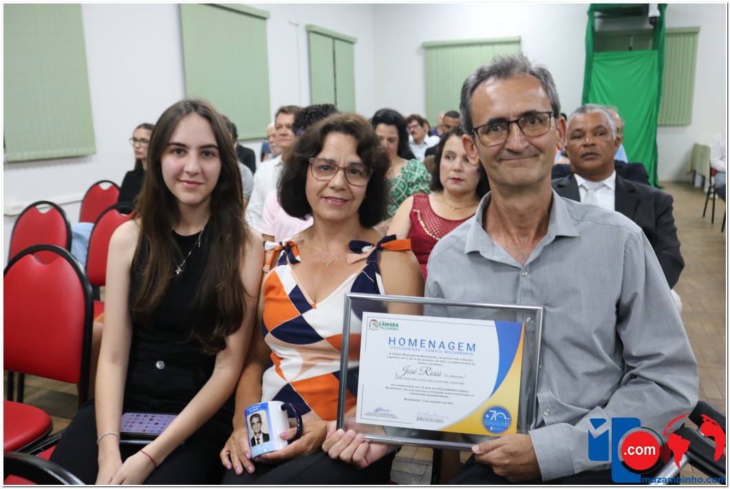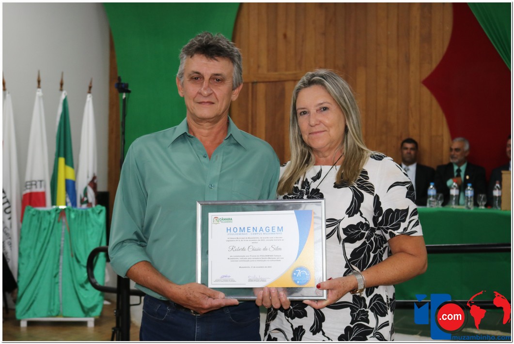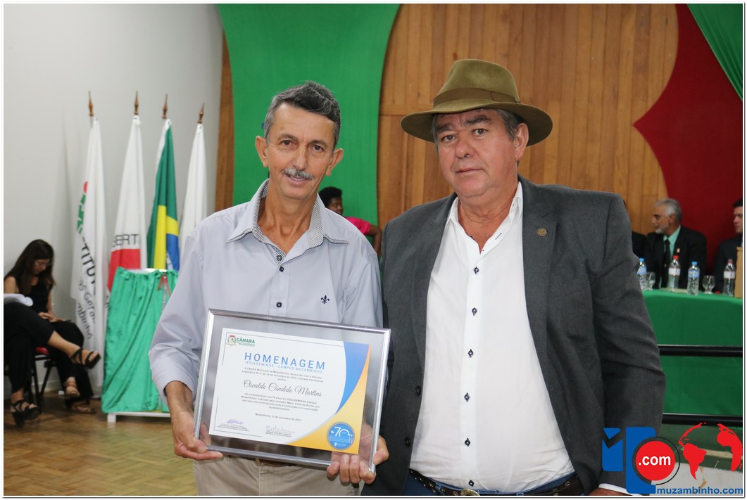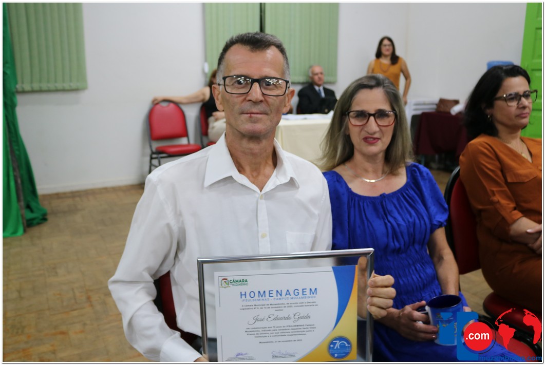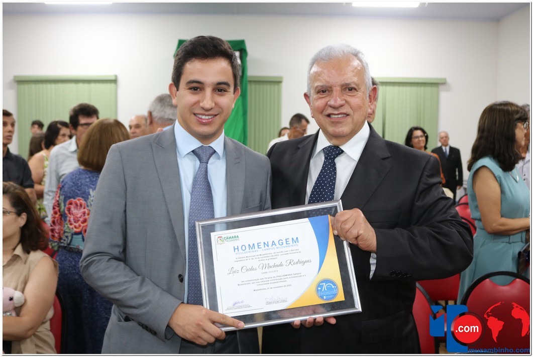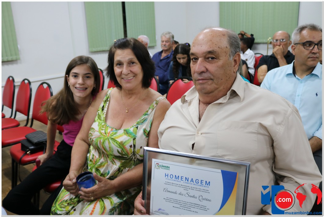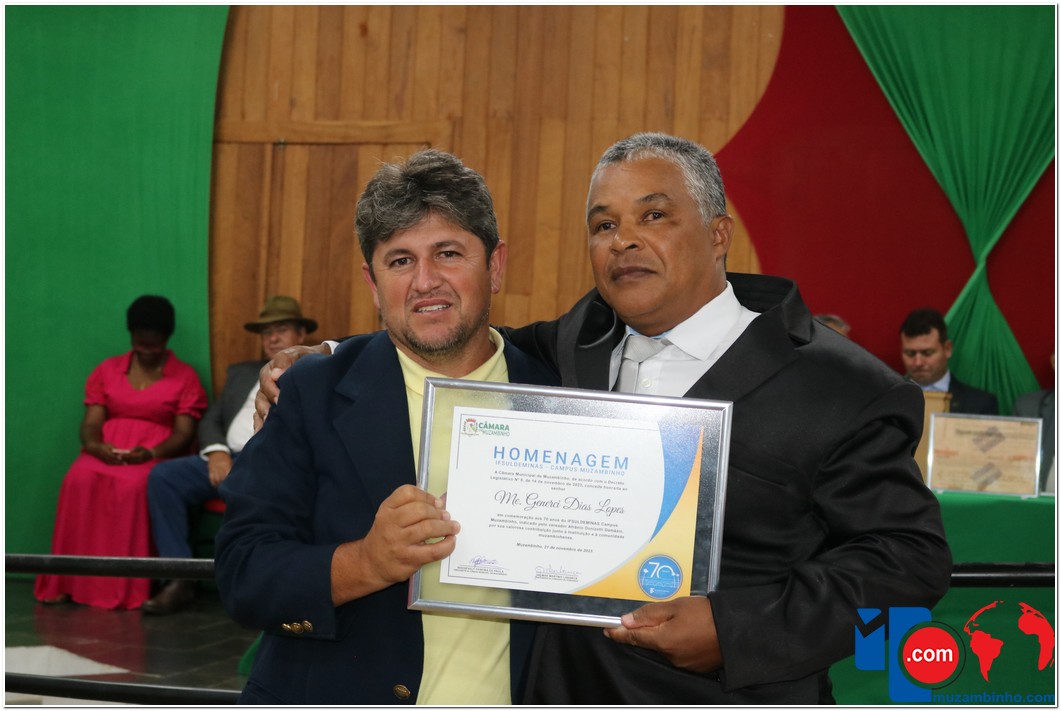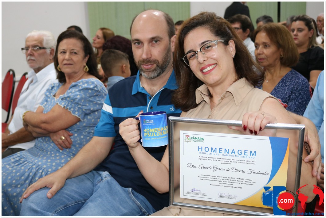 Em uma cerimônia emocionante, a Câmara Municipal de Muzambinho, Estado de Minas Gerais, na noite desta terça-feira, 21/11, concedeu homenagens a diretores e servidores do Instituto Federal – Campus Muzambinho, em comemoração aos 70 anos da Instituição. O Decreto Legislativo n º 8, de 14 de novembro de 2023, assinado pelo presidente da Câmara, Roosevelt Pereira de Paula, formalizou as distinções em reconhecimento aos relevantes serviços prestados ao longo dos anos.