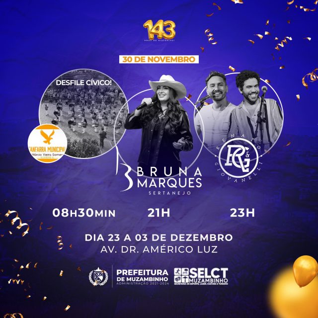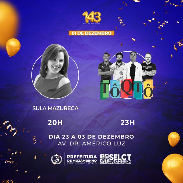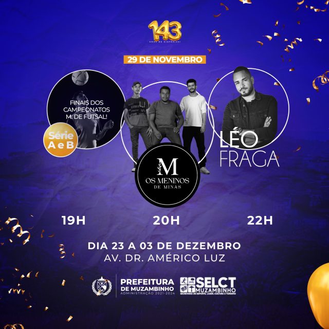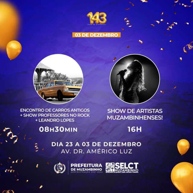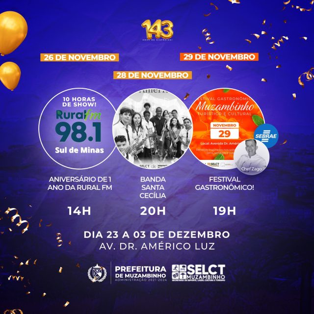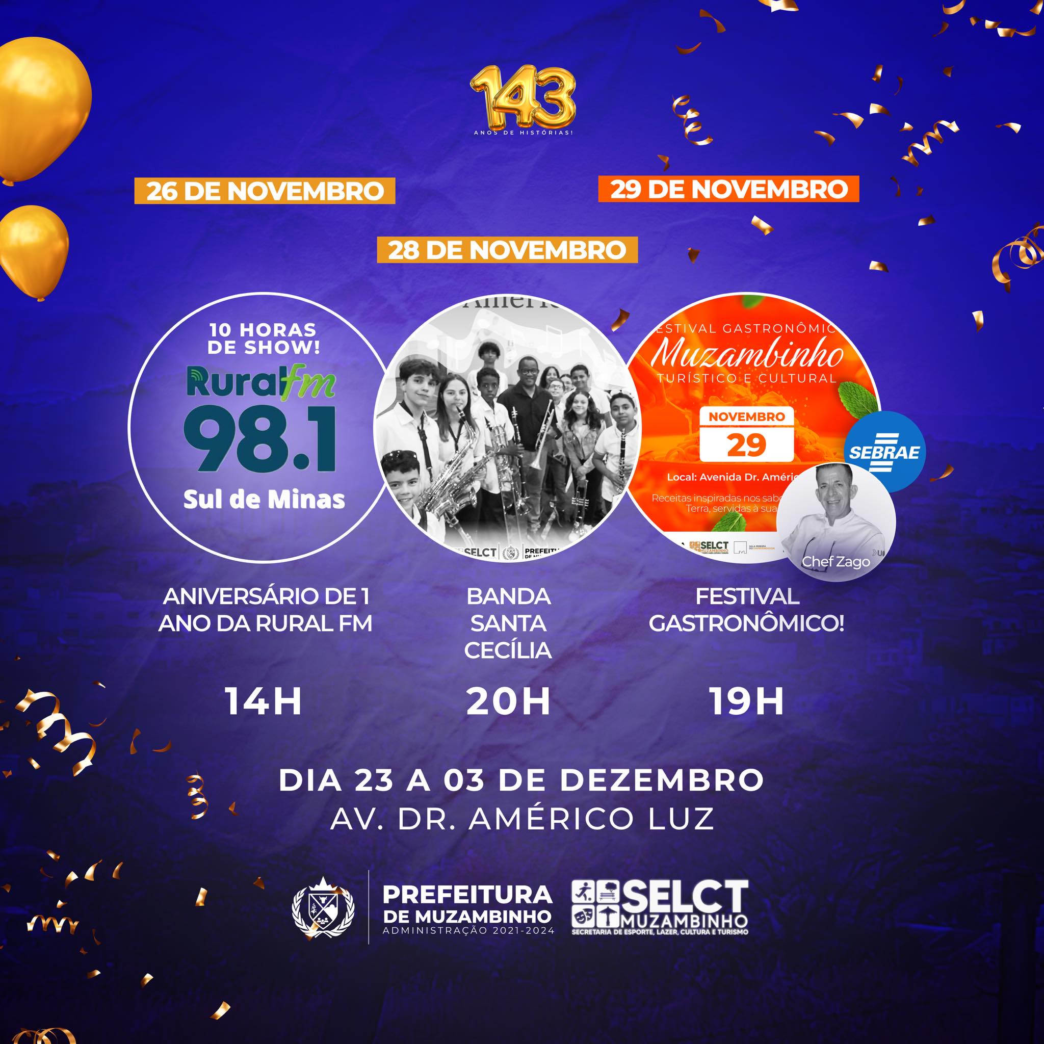 Mais Artigos Cozinha e CulináriaDestaqueEventos e FestasNossa CidadeParceiros Neste Sábado a Tardezinha é na Gastronomia Sagrada Família BelezaDestaqueNossa CidadeParceiros Zahra Cosméticos chega ao Centro de Muzambinho com novidades em beleza e bem-estar DestaqueEducaçãoEventos e FestasNossa CidadeParceiros Formatura do Ensino Médio do Colégio Lyceu marca encerramento de ciclo e novos caminhos para os alunosDestaqueEventos e FestasNossa CidadeConfira a programação completa do aniversário de Muzambinho Redação29 de novembro de 20231min0 143 ANOS DE HISTÓRIAS! Nesta Quarta-feira, 29/11, Festival Gastronômico na Avenida as 19hConfira a programação completa do aniversário do nosso município Post Views: 1.867