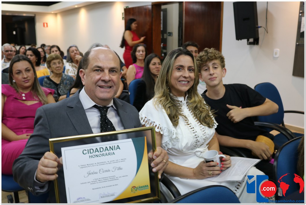 Em uma cerimônia marcada por solenidade e reconhecimento, a Câmara Municipal de Muzambinho realizou, na última quarta-feira, 29 de novembro, a Sessão Solene de Entrega do Título de “Cidadania Honorária”. Onze personalidades locais foram agraciadas com essa distinção, sendo cada uma indicada por um vereador.