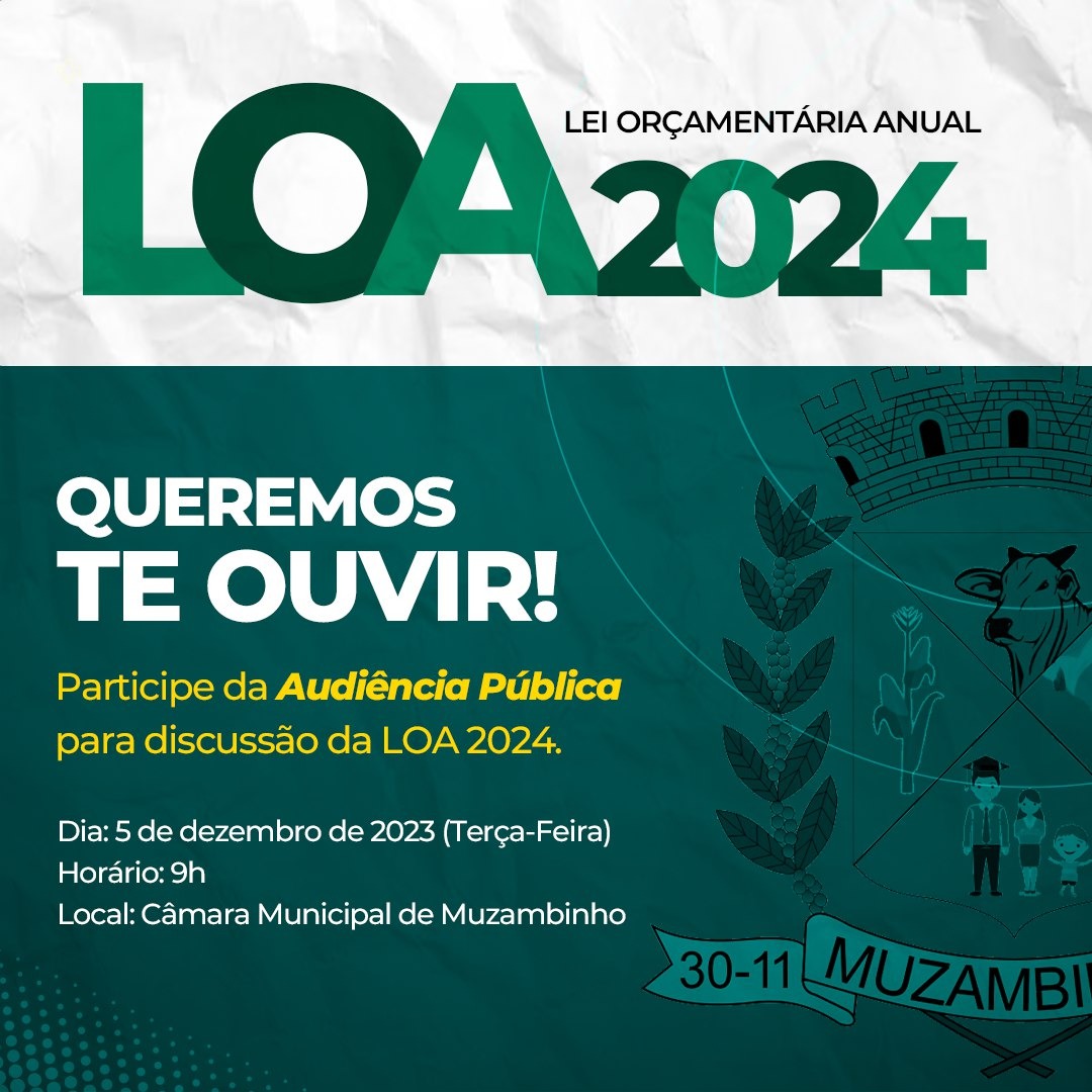 Mais Artigos DestaqueEsportesNossa CidadeParceiros 2º Pedal dos Cafés Especiais reúne atletas de Muzambinho e Caconde em ação solidária DestaqueEducaçãoNossa CidadeParceiros Formatura da Educação Infantil do Colégio Lyceu emociona familiares DestaqueEventos e FestasLegislativo Radialista muzambinhense Regis Policarpo recebe Título de Cidadão Alfenense DestaqueLegislativoNossa CidadePolíticaAcompanhe a Audiência Pública sobre a Lei Orçamentária Anual (LOA) 2024 em Muzambinho Redação5 de dezembro de 20231min0 Participe da Audiência Pública para discutir a LOA 2024 em Muzambinho Acompanhe ao vivo: Post Views: 723 câmaraLei