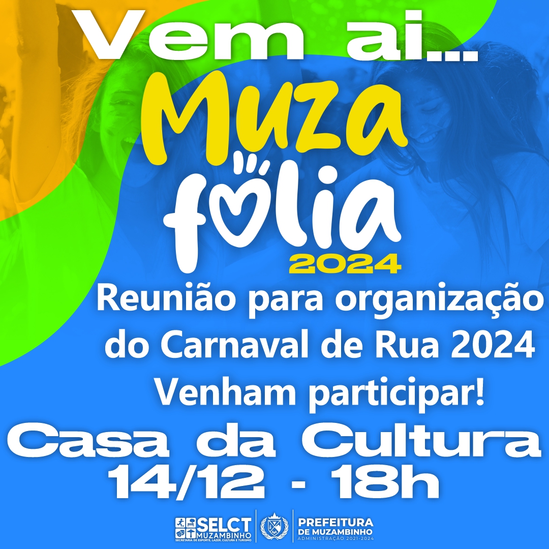 Nesta quinta-feira, 14/12, às 18h na Casa da Cultura será realizada a primeira reunião para iniciarmos a organização do Carnaval de Rua de Muzambinho.