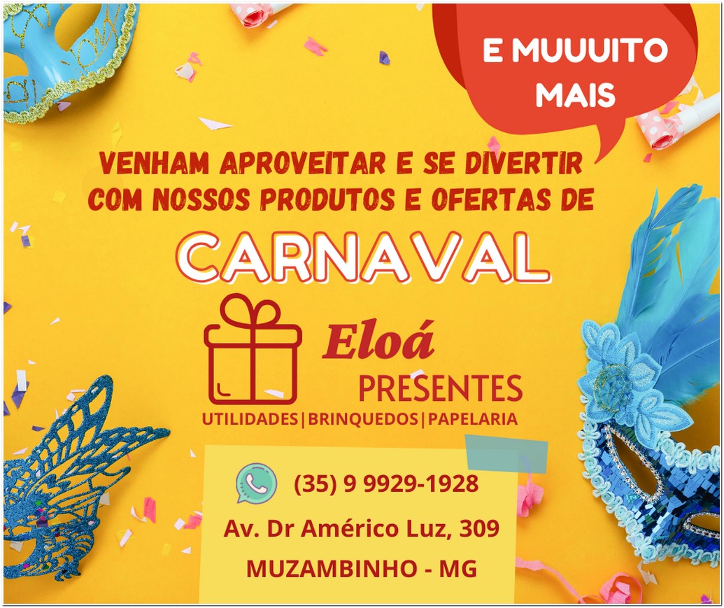Mais Artigos DestaqueNossa CidadeParceiros Sicredi celebra cinco anos em Muzambinho com investimentos sociais e crescimento conjunto DestaqueLazerParceiros “Avatar: Fogo e Cinzas” lidera a nova programação no Cine14Bis DestaqueEconomiaNosso Estado Segunda parcela do 13º salário é paga nesta sexta (19) e injeta bilhões na economia de MGDestaqueNossa CidadeParceirosEloá Presentes e o Carnaval de Ofertas 2024 Redação8 de fevereiro de 20241min0 Aproveite para se Divertir com os Produtos da Eloá... Post Views: 863CarnavalEloáOfertas