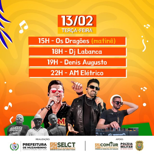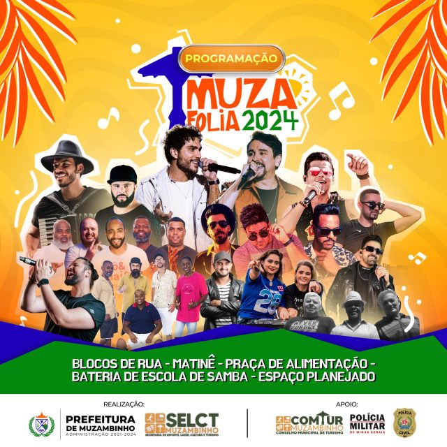 Vem viver o Muzafolia 2024, o carnaval que vai ficar na memória! Junte-se a nós nesta festa magnífica e faça parte de momentos únicos. Muzambinho espera por você para celebrar o carnaval com muita animação, música e diversão. Vem pra folia, vem pro Muzafolia 2024!
