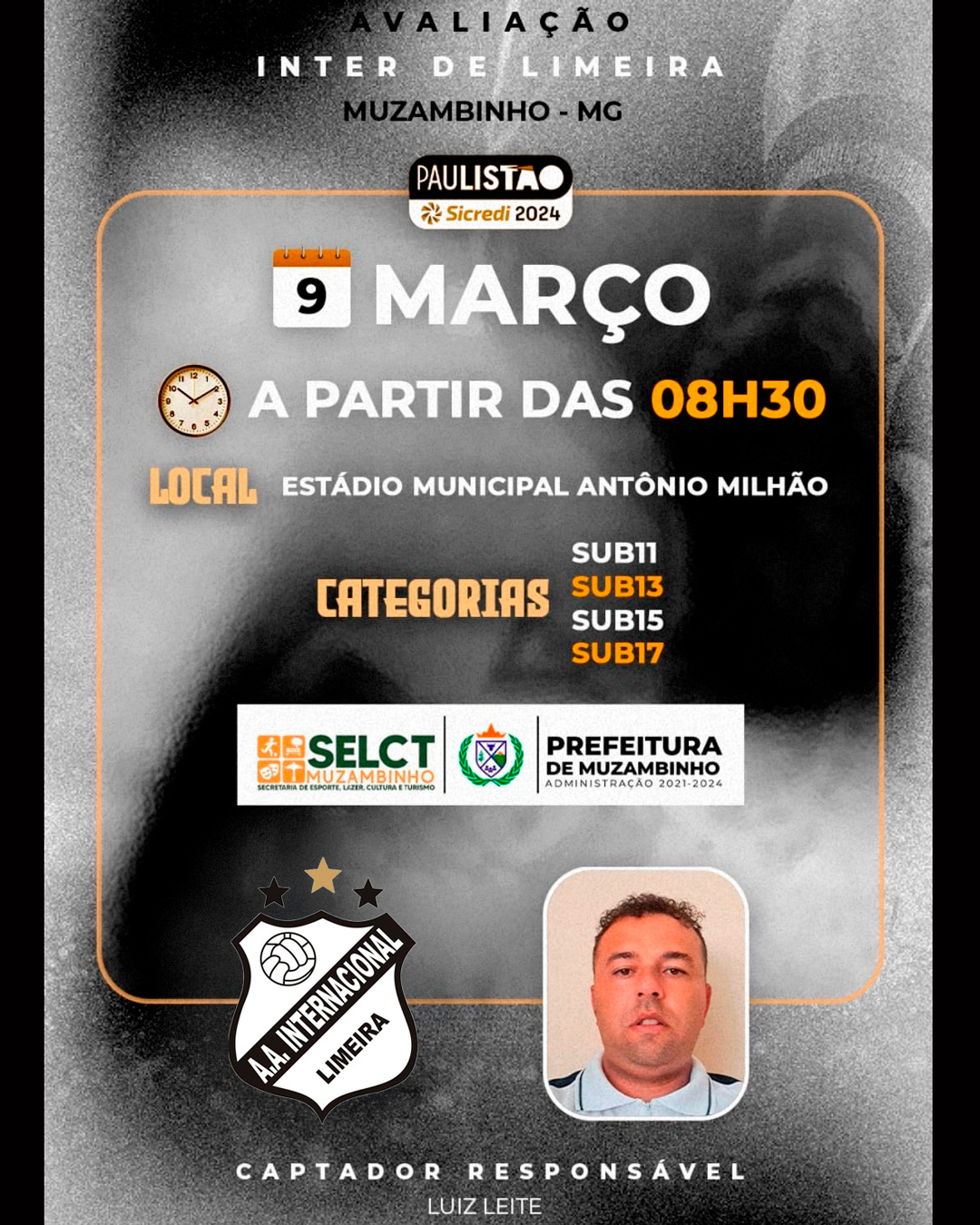 Peneira do time Inter de Limeira acontecerá em Muzambinho