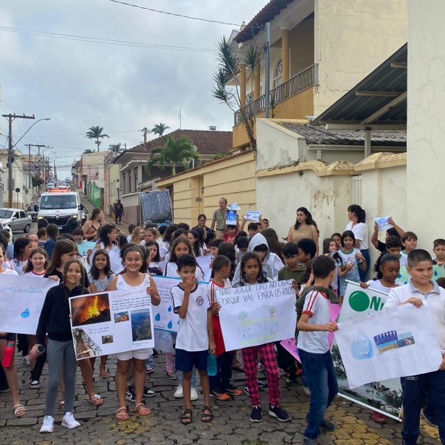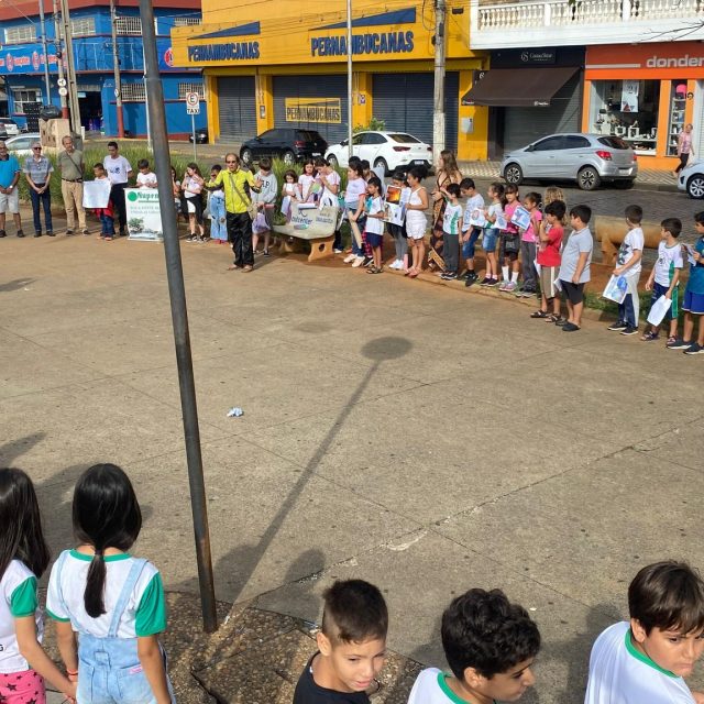Além disso, a Secretaria de Saúde disponibilizou uma ambulância e a Polícia Militar acompanhou todo o trajeto, garantindo a segurança e o bem-estar dos participantes. O encerramento da caminhada foi marcado por uma grande roda, onde foram feitas falas e leituras dos cartazes elaborados pelas crianças, em uma bonita confraternização que simbolizou o compromisso coletivo com a causa ambiental.