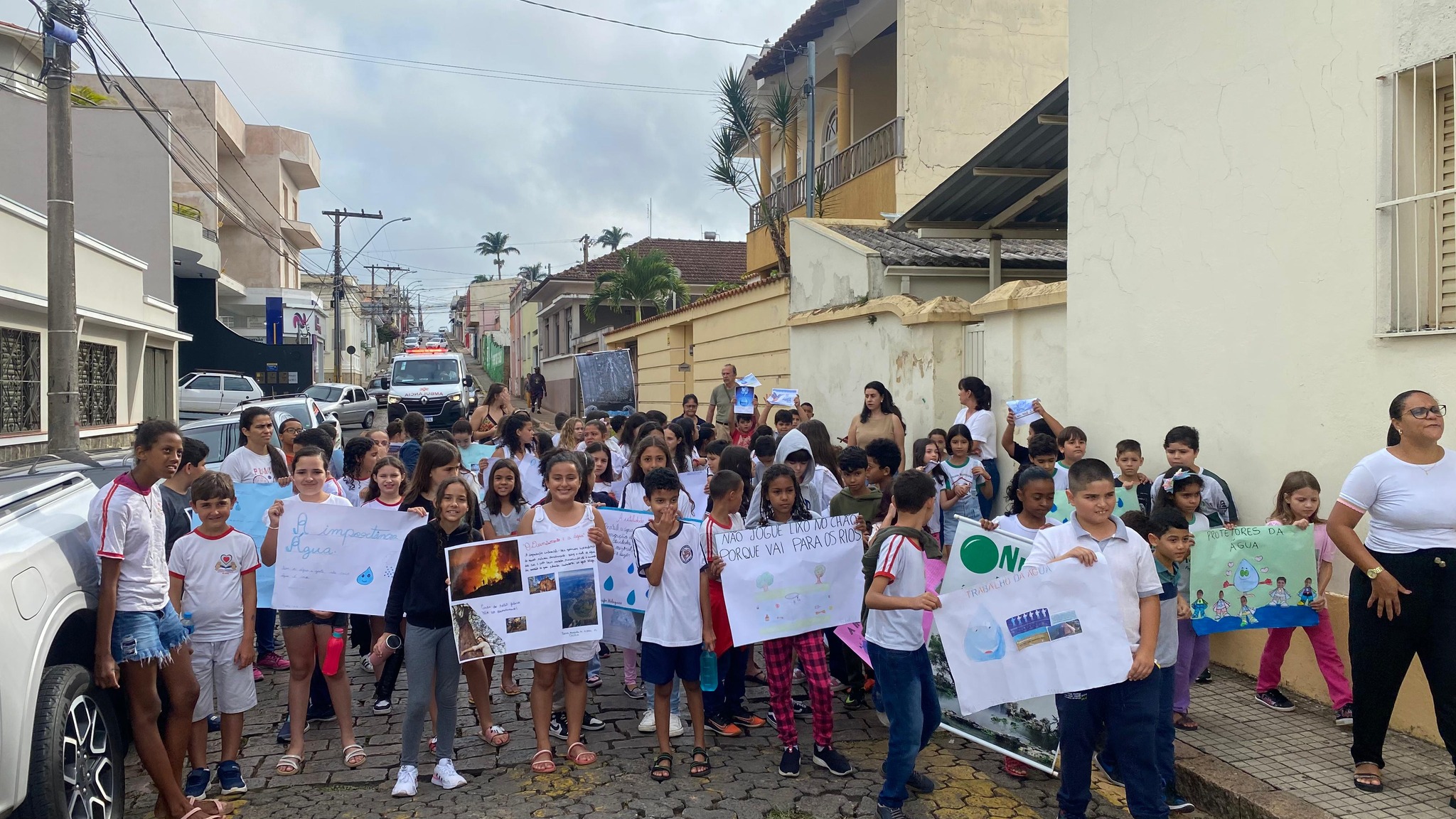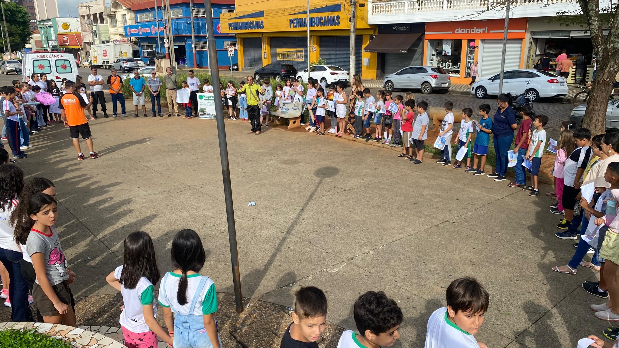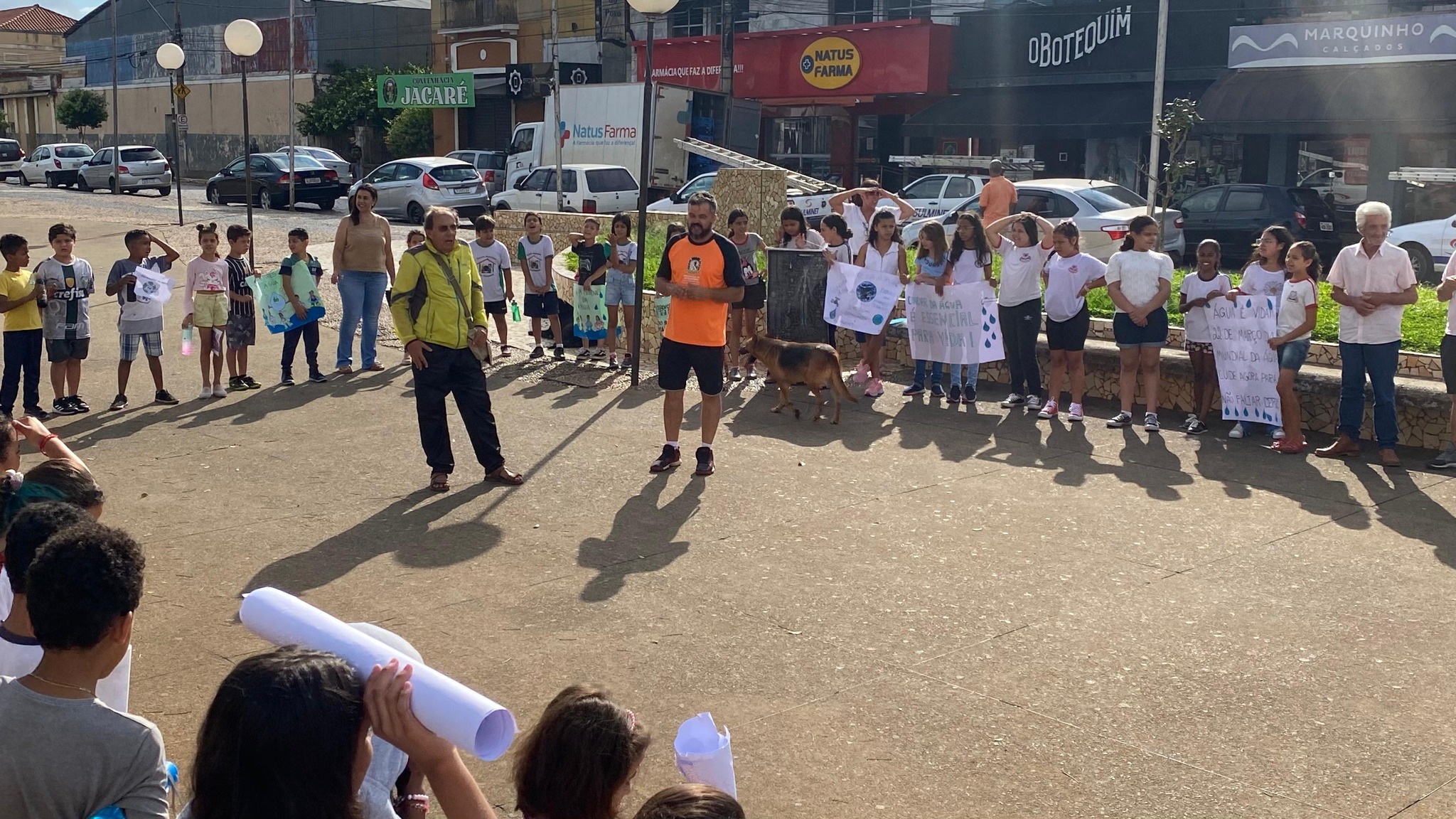 Além disso, a Secretaria de Saúde disponibilizou uma ambulância e a Polícia Militar acompanhou todo o trajeto, garantindo a segurança e o bem-estar dos participantes. O encerramento da caminhada foi marcado por uma grande roda, onde foram feitas falas e leituras dos cartazes elaborados pelas crianças, em uma bonita confraternização que simbolizou o compromisso coletivo com a causa ambiental.