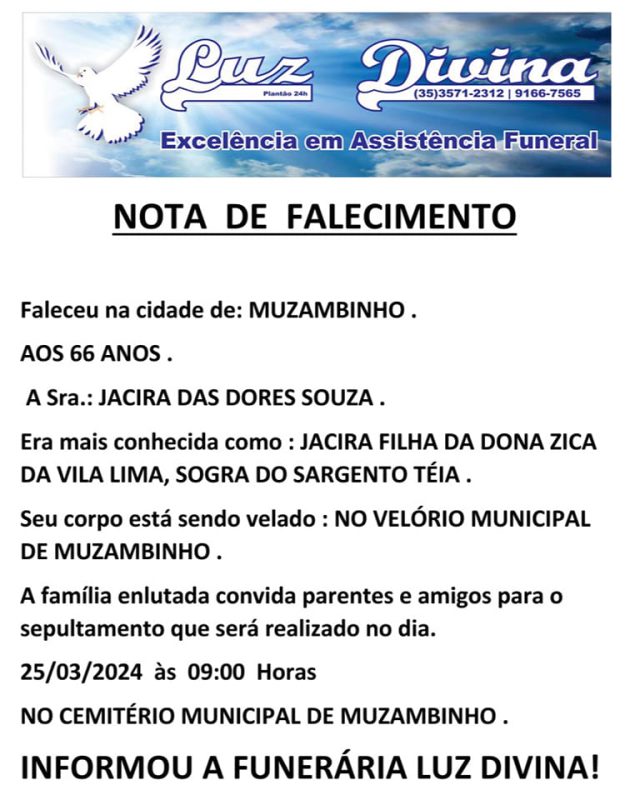 Mais Artigos DestaqueEventos e FestasParceiros Música ao vivo neste sábado no Bar do Edmar – Sagrada Família DestaqueEventos e FestasLegislativoNossa Cidade Câmara de Muzambinho homenageia mulheres trabalhadoras em sessão solene Cozinha e CulináriaDestaqueNossa CidadeParceiros Queijos Recheados e Trufados Musa: sabor surpreendente e apresentação que conquista o clienteDestaqueObituárioFaleceu aos 66 anos, a Sra. Jacira das Dores Souza Redação25 de março de 20241min0Informou a Funerária Luz DivinaA família enlutada, nossos sinceros sentimentos de pesares, que Deus os abençoe e conforte. Post Views: 1.011EnterroFuneráriaLuz DivinamorteobituárioSepultamentoVelório