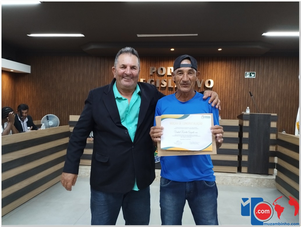 Por fim, Vantuil Roberto Augusto, conhecido carinhosamente como “Bem”, foi homenageado pelos relevantes serviços prestados à população muzambinhense como servidor da prefeitura desde 2004. Sua dedicação ao serviço público e seu compromisso com a comunidade foram ressaltados durante a entrega da moção.