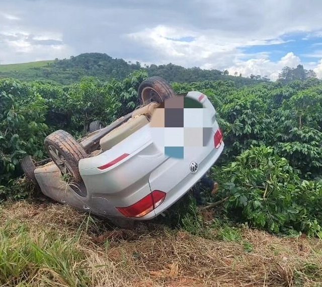 O impacto resultou no capotamento de um dos veículos, enquanto o outro saiu da pista de rolamento e parou em meio a uma lavoura de café.