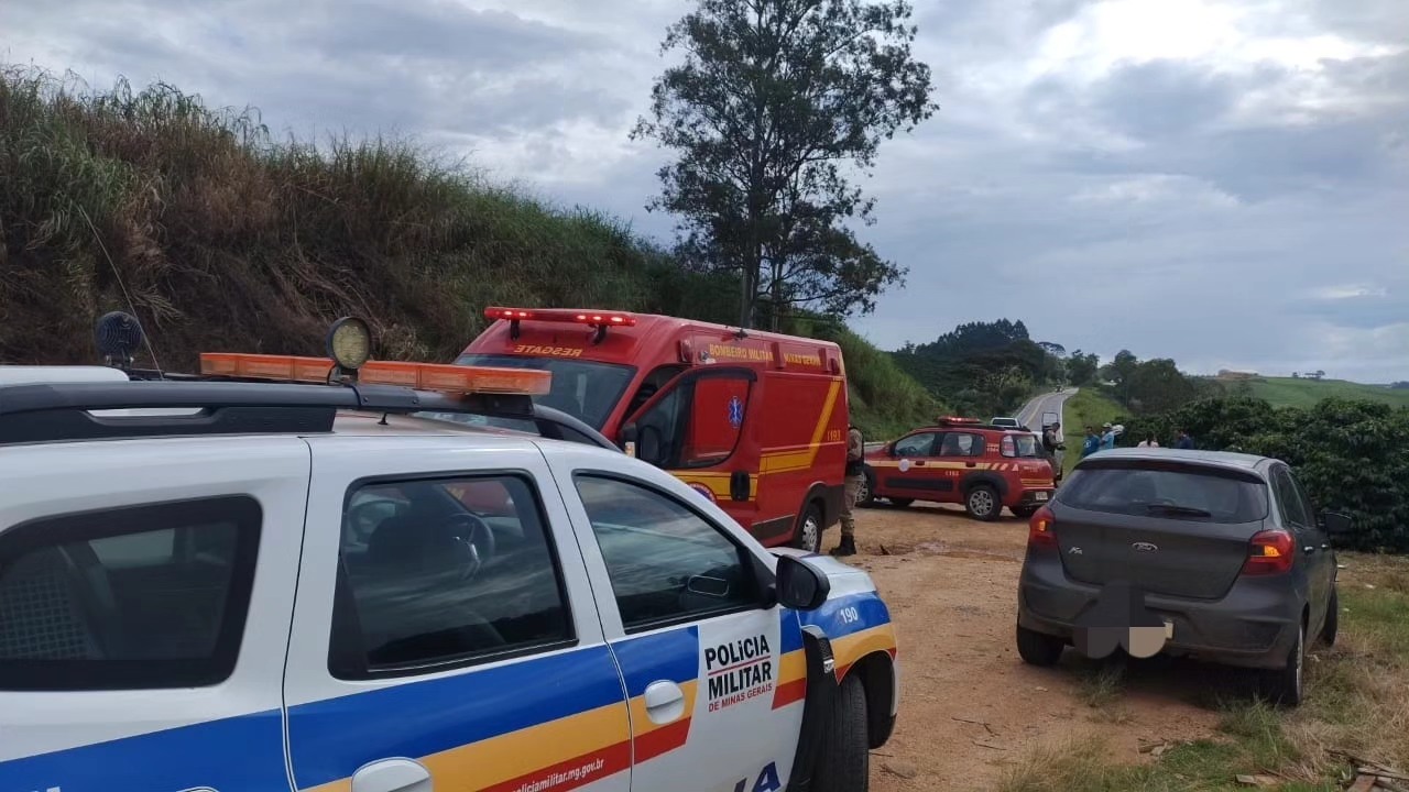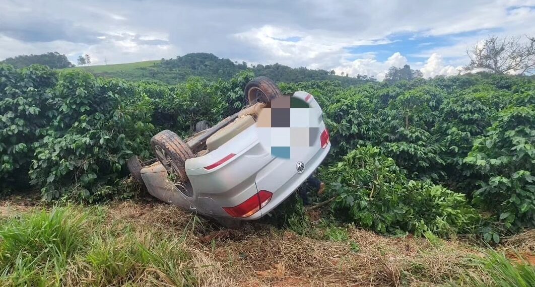 O impacto resultou no capotamento de um dos veículos, enquanto o outro saiu da pista de rolamento e parou em meio a uma lavoura de café.