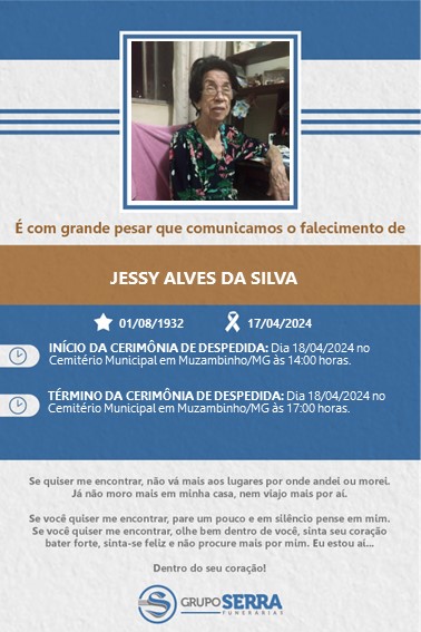 Faleceu na cidade de Campinas a Sra. Jessy Alves da Silva.