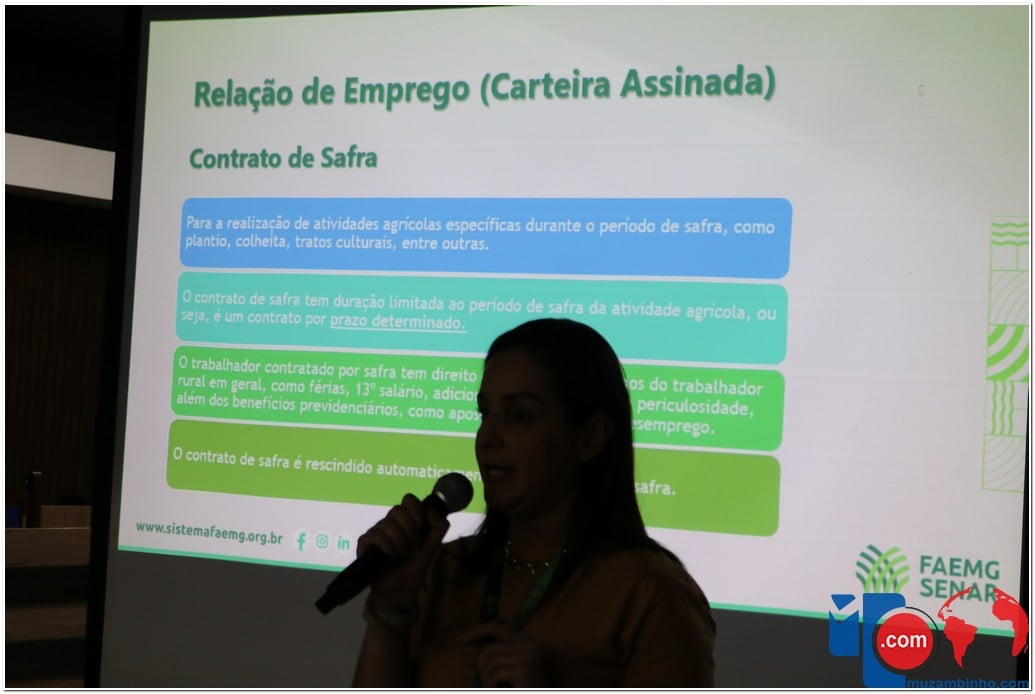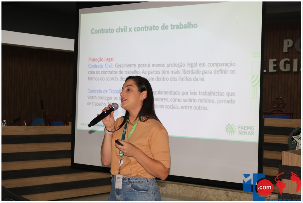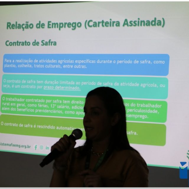 - Normativas do Ministério do Trabalho durante a Colheita de Café: Na terceira palestra, foram apresentadas as normativas do Ministério do Trabalho que regulam a colheita de café. Os cafeicultores receberam orientações sobre a contratação formal de trabalhadores, cumprimento de legislações trabalhistas, condições de trabalho adequadas e o cumprimento de normas no campo.