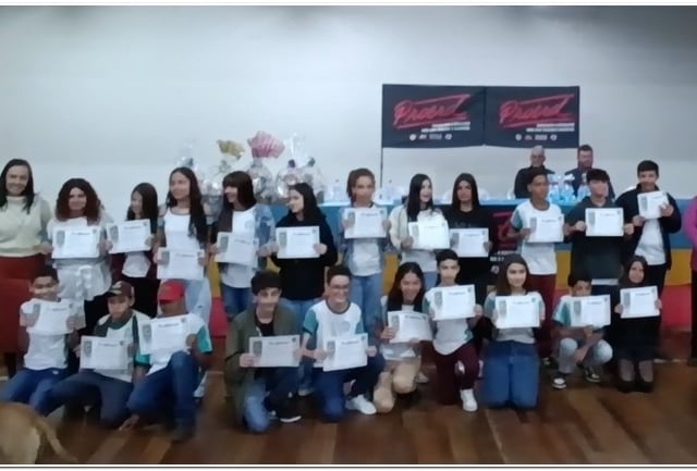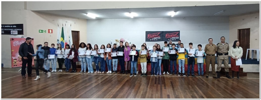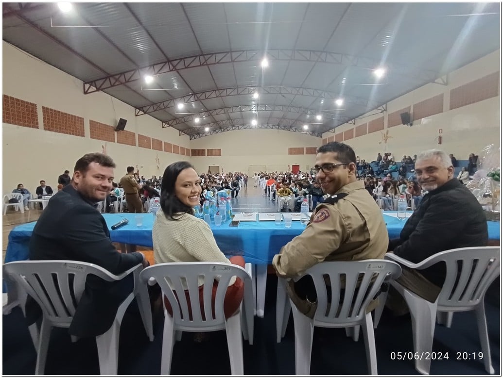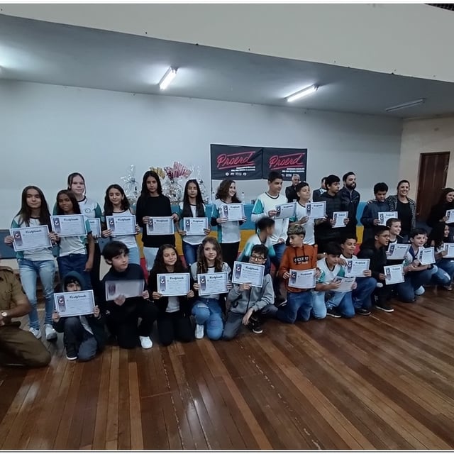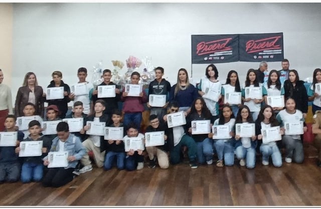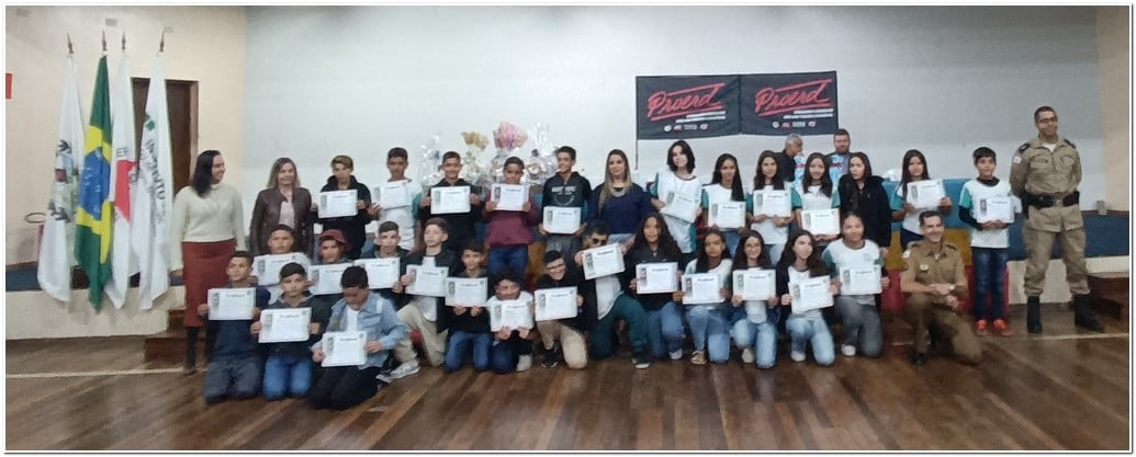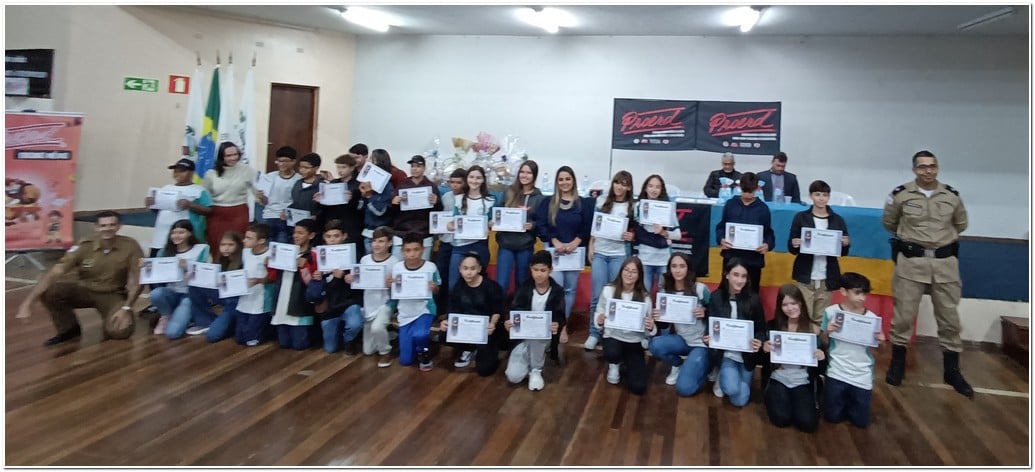 Nesta quarta-feira, 05/06, no Ginásio Alencar Bernardes, no Instituto Federal de Muzambinho, aconteceu uma celebração especial. Pais, amigos e familiares reuniram-se para homenagear adolescentes, com idades entre 7 e 17 anos, da Escola Estadual Cesário Coimbra, que concluíram o Programa Educacional de Resistência às Drogas (PROERD) este ano.