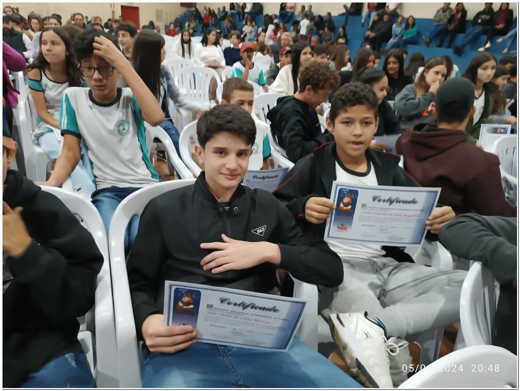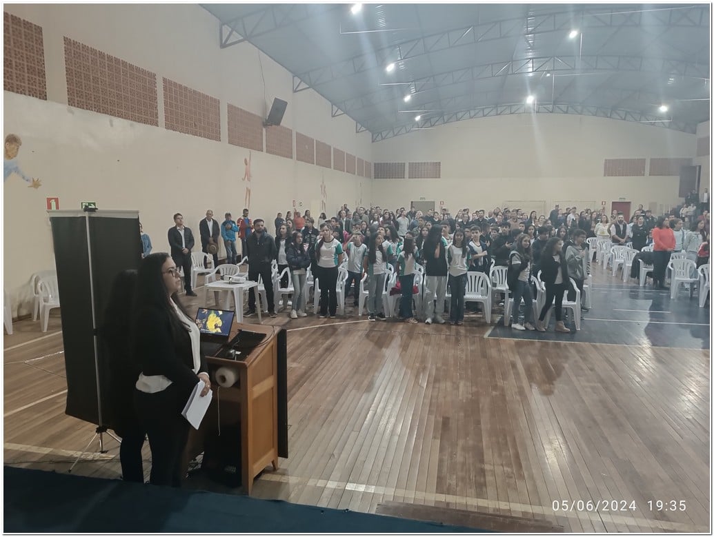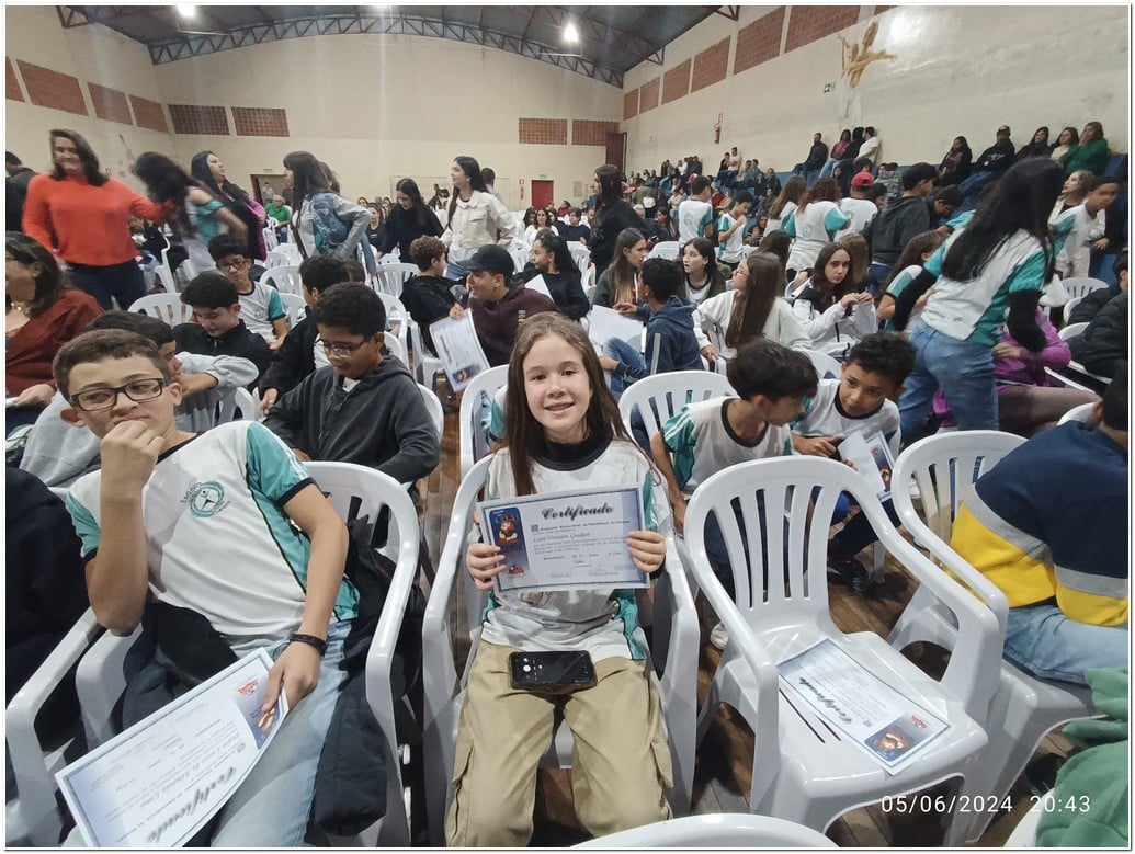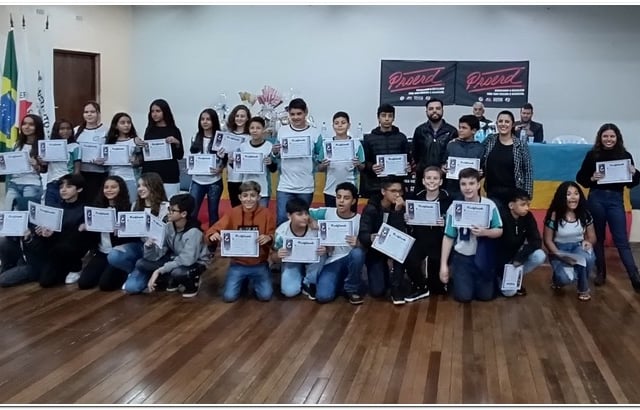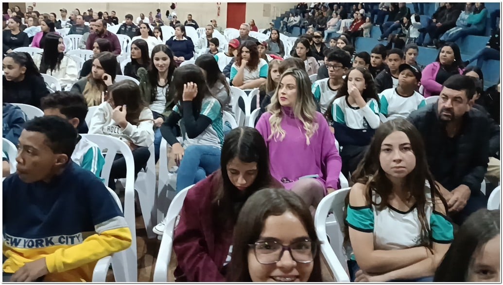 Nesta quarta-feira, 05/06, no Ginásio Alencar Bernardes, no Instituto Federal de Muzambinho, aconteceu uma celebração especial. Pais, amigos e familiares reuniram-se para homenagear adolescentes, com idades entre 7 e 17 anos, da Escola Estadual Cesário Coimbra, que concluíram o Programa Educacional de Resistência às Drogas (PROERD) este ano.
