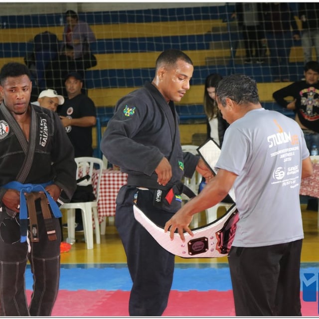 O atleta Emanuelton venceu a luta e sagrou-se Campeão recebendo o Cinturão Sicredi, patrocinador.