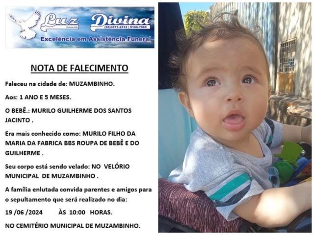 Mais Artigos AgronegócioDestaque Café em Foco, 06/04/26, Cotações e Informações da Cafeicultura DestaqueEventos e FestasNossa CidadeParceiros Casa cheia marca evento de Sábado de Aleluia no Bar do Edmar DestaqueEconomiaNossa Cidade Crédito fundiário garante acesso à terra e muda a realidade de trabalhadores rurais em MuzambinhoDestaqueObituárioFaleceu aos 1 ano e 5 meses, Murilo Guilherme dos Santos Redação19 de junho de 20241min0Informou a Funerária Luz DivinaA família enlutada, nossos sinceros sentimentos de pesares, que Deus os abençoe e conforte. Post Views: 1.055EnterroFuneráriaLuz DivinamorteobituárioSepultamentoVelório