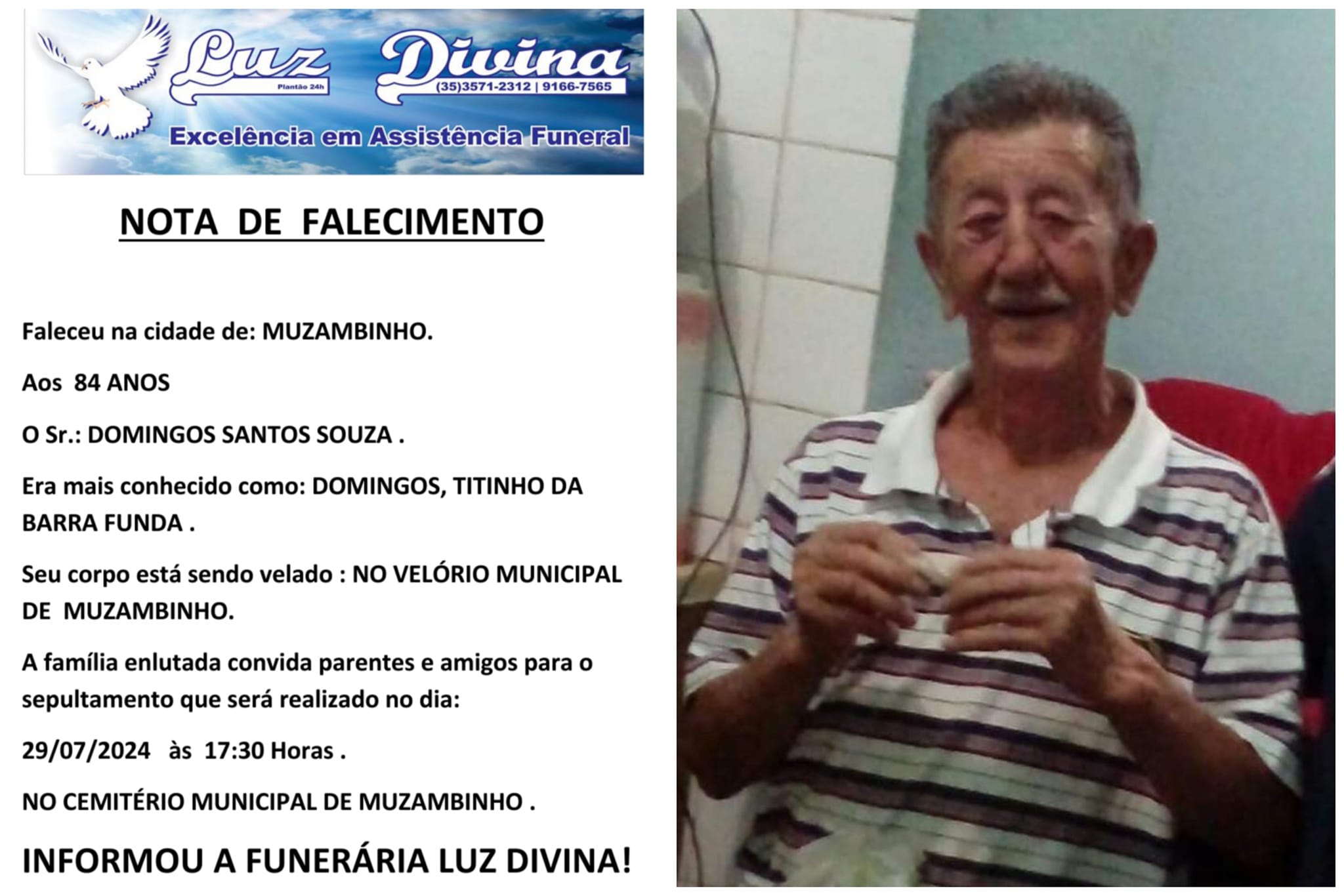 Mais Artigos DestaqueEconomia R$ 33,5 bilhões: abono salarial será pago a quase 27 milhões de pessoas; veja datas DestaqueExecutivoNossa CidadeParceirosSaúde Muzambinho amplia frota da saúde com a entrega de 11 novos veículos DestaqueObituário Faleceu aos 88 anos a Sra. Francisca Cândida RussiDestaqueObituárioFaleceu aos 84 anos o Sr. Domingos Santos Souza Redação29 de julho de 20241min0Informou a Funerária Luz DivinaA família enlutada, nossos sinceros sentimentos de pesares, que Deus os abençoe e conforte. Post Views: 535EnterroFuneráriaLuz DivinamorteobituárioSepultamentoVelório