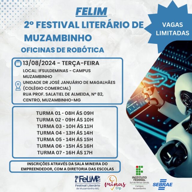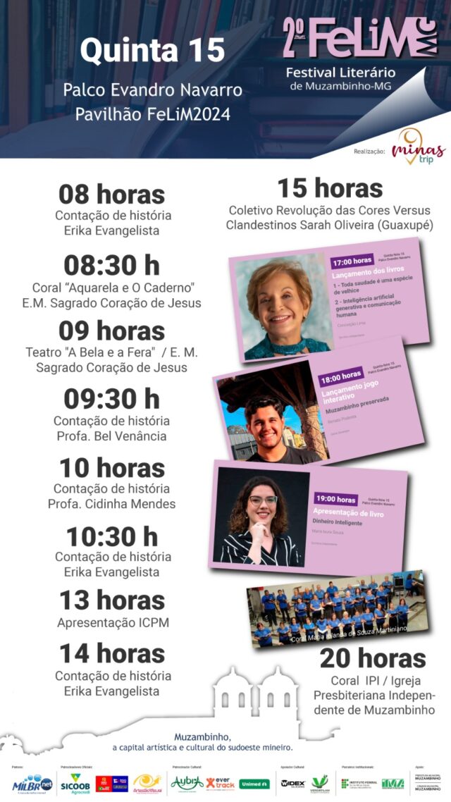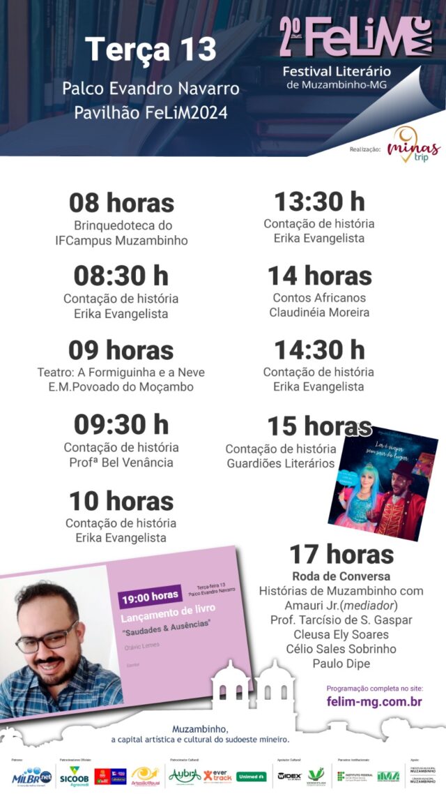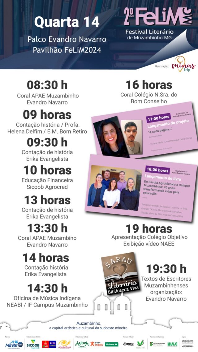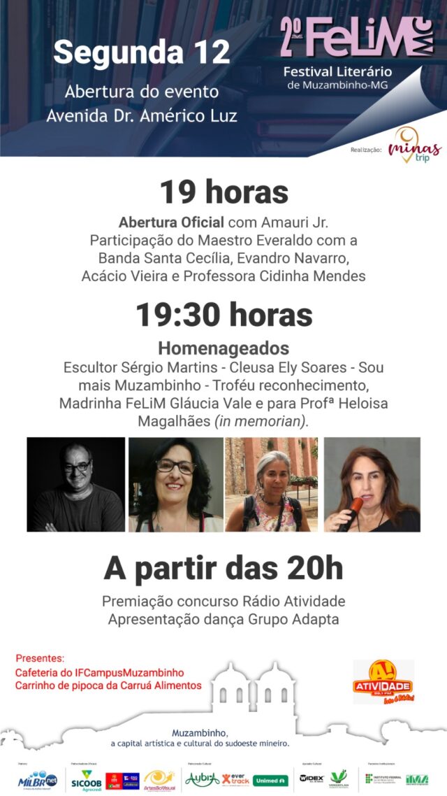 Mais Artigos AgronegócioDestaqueEventos e Festas Mudanças no clima levam cafeicultores a buscar tecnologia e dados na Femagri 2026 DestaqueParceiros Faz de Conta Papelaria & Presentes lança promoção especial com descontos imperdíveis no Dia do Consumidor DestaqueLazerParceiros Cine14Bis: Confira a Programação SemanalCulturaDestaqueEventos e FestasNossa CidadeParceirosProgramação FELIM 2024 – De 12 a 16/08/24 Redação3 de agosto de 20241min0Uma semana inteira de histórias e memórias, vamos celebrar a cultura e o patrimônio de nossa cidade. VAGAS ESGOTADAS. Post Views: 928CulturaFELIMhistóriasMemóriasPatrimônio