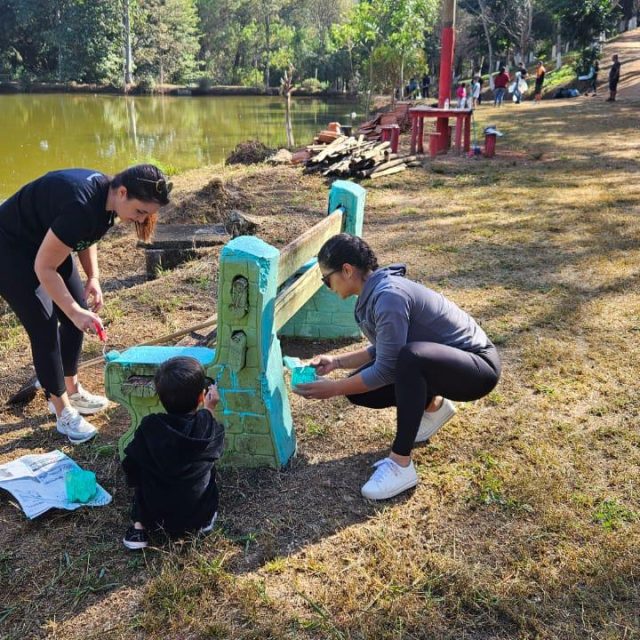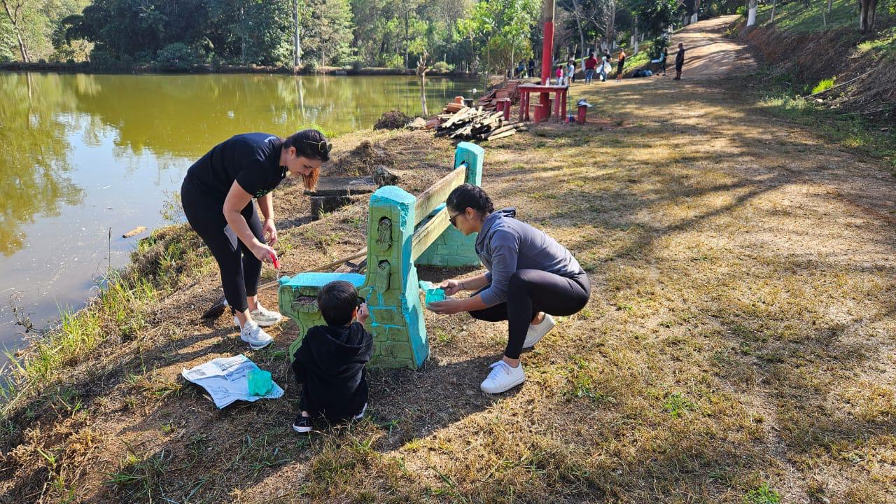 Muzambinho – a agência realizou uma ação no Parque Municipal, com a pintura de bancos e cercas e a limpeza do gramado.