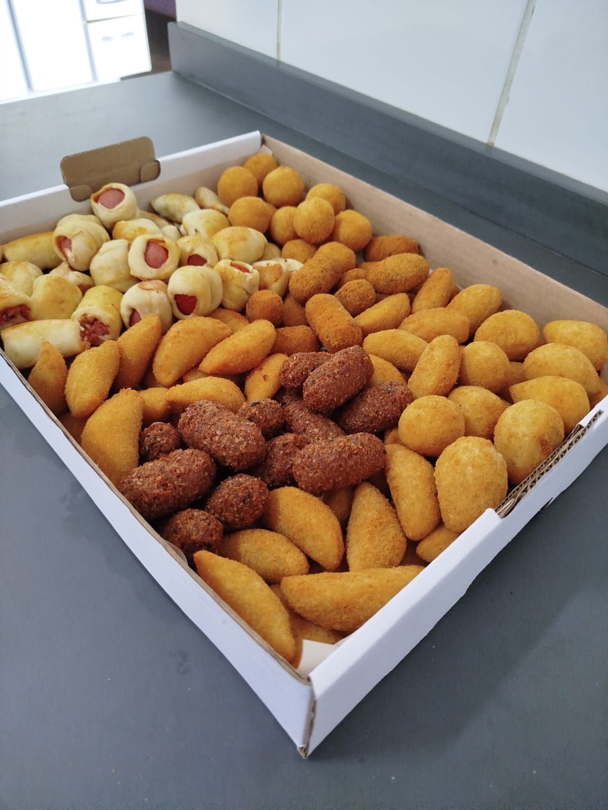 Oferecemos uma ampla gama de salgados que agradam a todos os gostos. Das coxinhas e risoles clássicos, que trazem aquele sabor nostálgico, até criações inovadoras que surpreendem o paladar, temos algo especial para cada cliente.