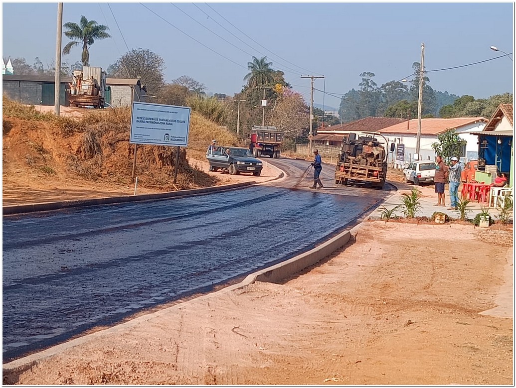 A Prefeitura de Muzambinho em mais uma ação na Zona Rural, contempla os moradores do Bairro Patrimônio com pavimentação da rua principal, trazendo mais conforto e qualidade de vida aos moradores que tem suas residências em frente a um pequeno trecho, mas que representa uma grande conquista, acabando com a poeira e barro que enfrentam no dia a dia.
