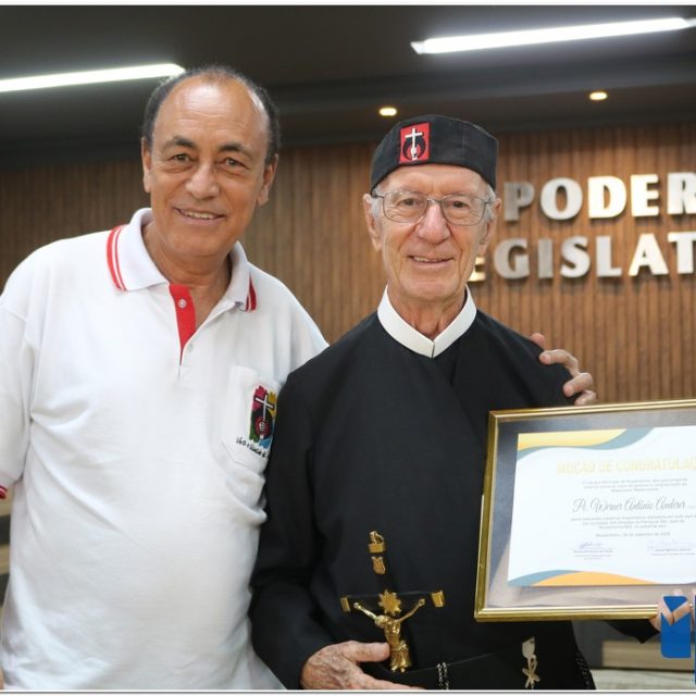 Durante a cerimônia, vereadores destacaram a importância da dedicação e do compromisso de Pe. Werner com a missão redentorista. A homenagem reflete o reconhecimento público do papel fundamental do padre na construção de uma sociedade mais justa e solidária.