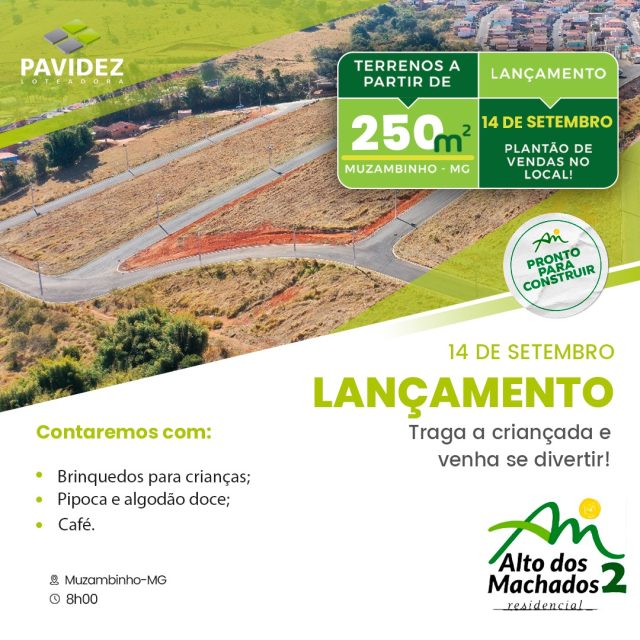 A Pavidez apresentou neste sábado, 14/9, o Alto dos Machados 2, o loteamento perfeito para quem está pronto para construir o lar dos sonhos.