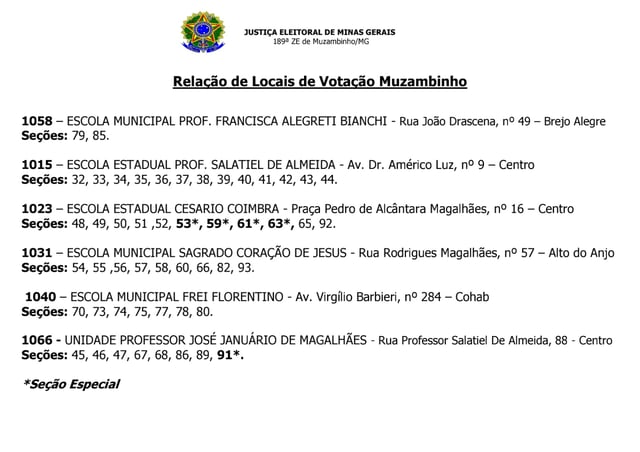 Confira a Localização de cada Sessão Eleitoral em Muzambinho e Juruaia