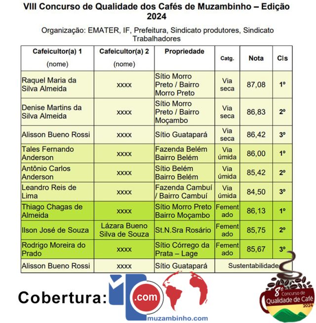 O VIII Concurso de Qualidade de Cafés de Muzambinho é uma demonstração clara do compromisso da cidade em se consolidar como um polo de excelência na produção de cafés especiais. Parabéns a todos os participantes e vencedores que, com dedicação e inovação, continuam elevando o nome de Muzambinho no cenário cafeeiro nacional.