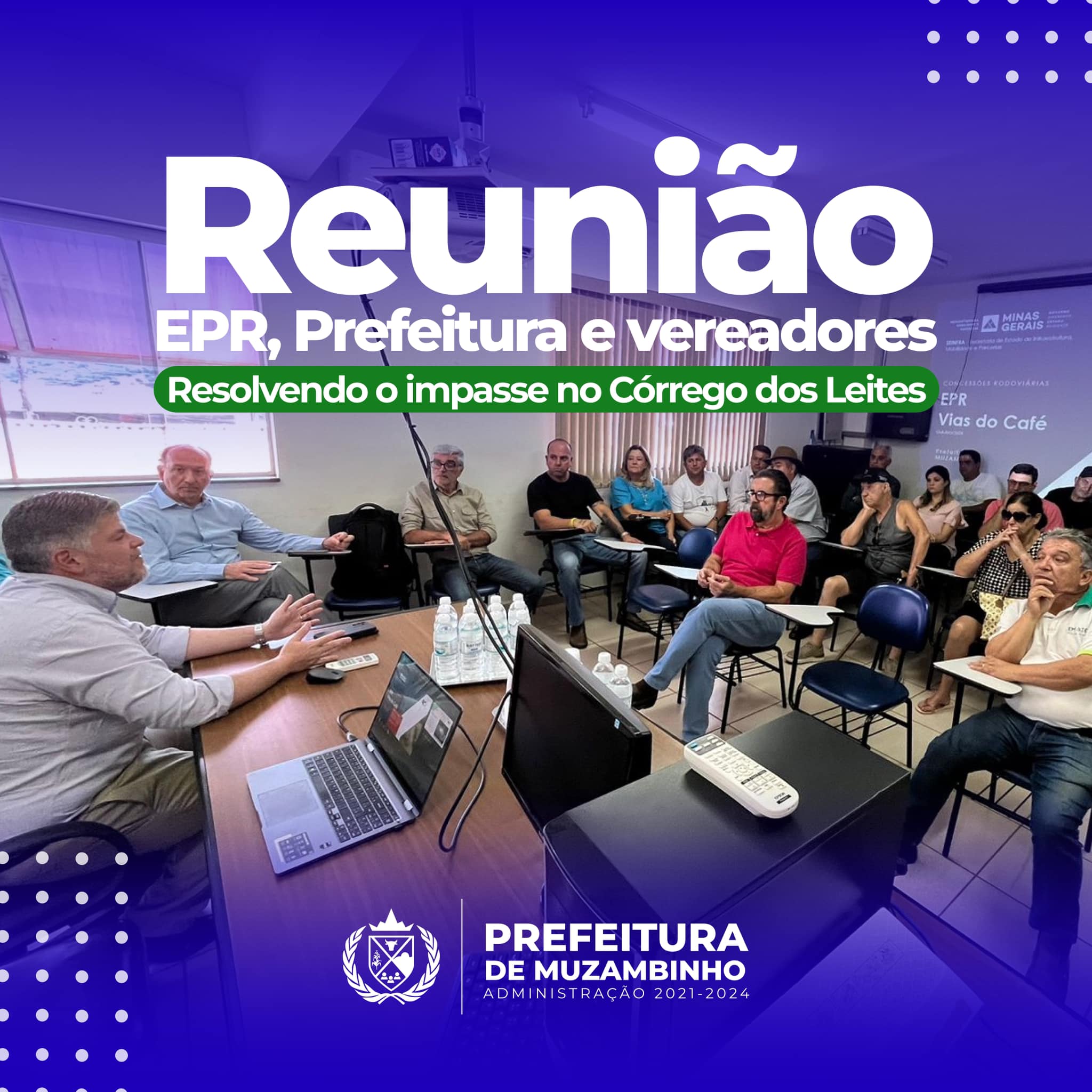 Na tarde desta terça-feira, 31 de outubro, a Prefeitura de Muzambinho foi palco de uma reunião importante para buscar soluções no impasse de acesso no Córrego dos Leites, envolvendo representantes da empresa de pedágio EPR Vias do Café, autoridades locais e vereadores. Participaram do encontro o presidente da EPR, Diogo, acompanhado de sua equipe executiva; o inspetor do Departamento de Estradas de Rodagem (DER), Marcelo; o prefeito Paulo Sérgio Magalhães; o secretário de gabinete, Tarcísio Costa; e vereadores dos mandatos de 2021-2024 e 2025-2028.