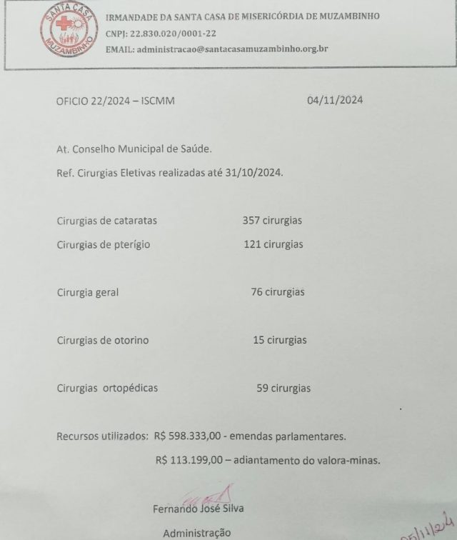 Contato: Para mais informações, a população pode entrar em contato com a Santa Casa de Muzambinho.