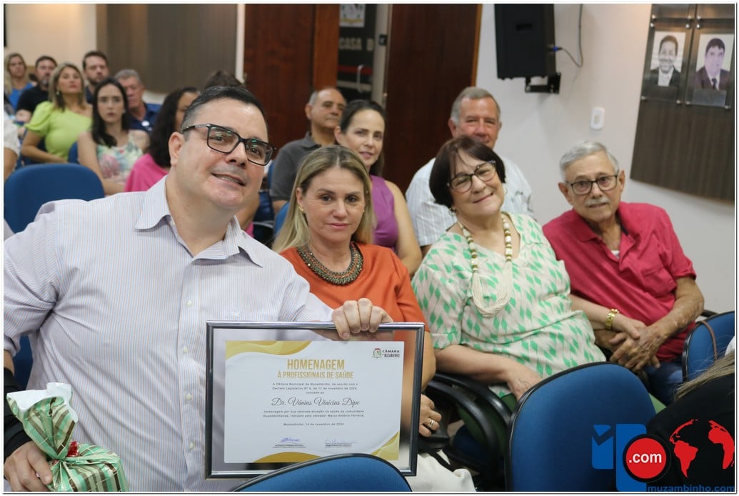 Os Profissionais da saúde do município de Muzambinho que foram reconhecidos por seus serviços na solenidade que aconteceu na noite desta quinta-feira, 14 de novembro de 2024, a sessão solene aconteceu no Plenário da Câmara de Muzambinho.
