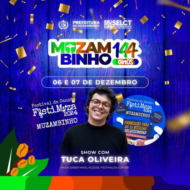 Nos dias 6 e 7 de dezembro, o FestiMuza retorna, destacando a música autoral de Muzambinho e do Brasil. No dia 6, o evento contará com um show de Tuca Oliveira. No dia 7, as 15 melhores canções selecionadas no festival serão apresentadas ao público.