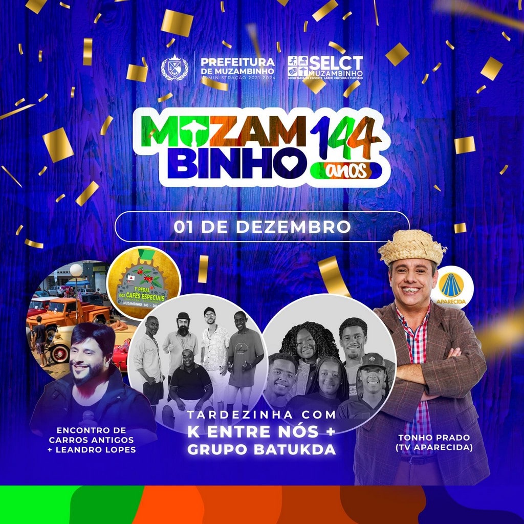 O município de Muzambinho está prestes a completar 144 anos de história. Para marcar a data, a Prefeitura preparou uma programação especial, que se estenderá por diversos dias e oferecerá atrações culturais, esportivas, musicais e gastronômicas gratuitas para a população e visitantes.