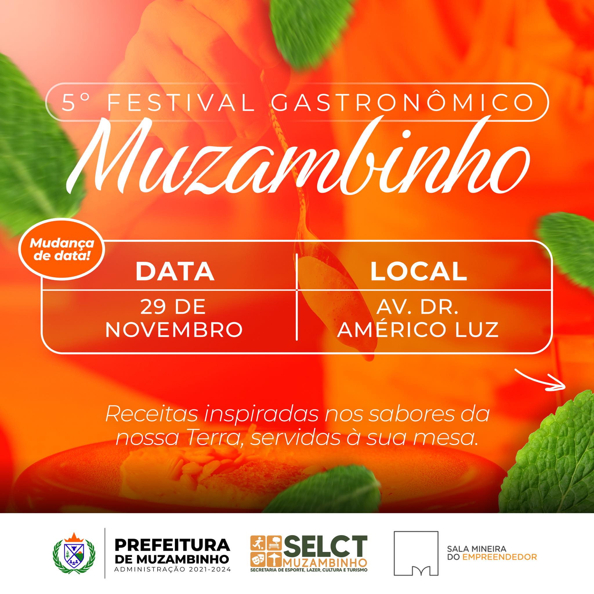 A gastronomia de Muzambinho será a grande estrela no próximo dia 29 de novembro, quando a cidade receberá o aguardado 5º Festival Gastronômico de Muzambinho. Realizado na Avenida Dr. Américo Luz, o evento começa às 17h e promete uma experiência gastronômica inesquecível, reunindo o melhor da culinária local em um ambiente acolhedor e cheio de sabor.