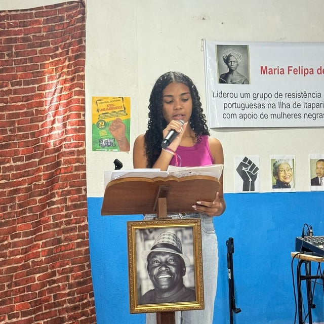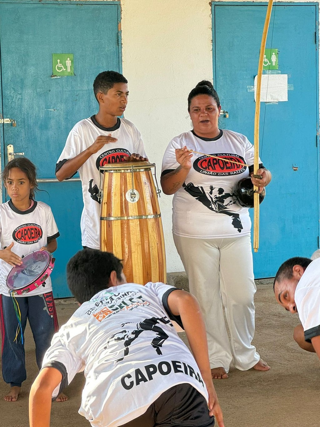 O palco também foi cenário para performances marcantes. O grupo União das Raízes trouxe a magia da capoeira, enquanto o Coletivo em Cores apresentou poesias e contações de histórias entrelaçadas com música e mensagens de resistência. Um dos momentos mais aguardados foi a apresentação dos Caiapós de Cabo Verde, que conectou a comunidade às suas ancestralidades e homenageou figuras históricas como Chico Roxo, símbolo da força quilombola.