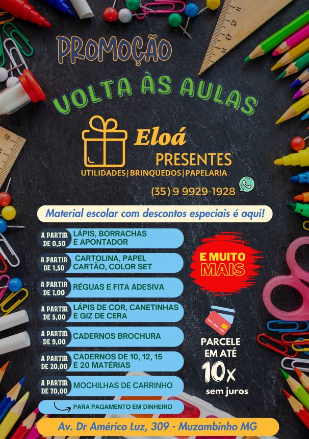 Mais Artigos DestaqueObituário Faleceu aos 63 anos o Sr. José Maria Magalhães DestaqueNossa CidadeParceiros Sicredi celebra cinco anos em Muzambinho com investimentos sociais e crescimento conjunto EducaçãoNosso EstadoSaúde 8 em cada 10 estudantes mineiros relatam sintomas de ansiedade e depressão, aponta estudoDestaqueEducaçãoNossa CidadeParceirosVolta às Aulas – Eloá Presentes Redação14 de janeiro de 20251min0A Eloá já tem as listas de material escolar de todas as escolas. Post Views: 550aulasescolarmaterialpromoção