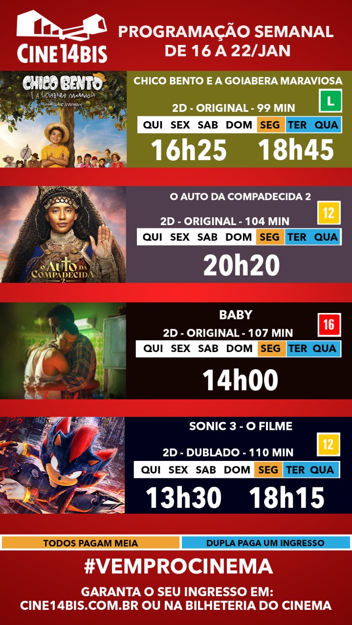 Mais Artigos DestaqueEventos e FestasNossa Cidade Emize Skate Festival chega à 5ª edição em novo espaço no Parque Colina DestaqueParceiros Sicredi terá horário diferenciado de atendimento no final do ano AgronegócioDestaqueNossa Cidade Projeto Campo Limpo recolhe mais de 5 toneladas de embalagens agrícolas na 2ª edição de 2025 em MuzambinhoDestaqueLazerParceirosCine14Bis Guaxupé – Programação da Semana Redação19 de janeiro de 20251min0Sobre o Cine14Bis:O Cine14Bis é o ponto de encontro dos apaixonados por cinema em Guaxupé e região, trazendo os melhores lançamentos nacionais e internacionais em um ambiente aconchegante e moderno. Post Views: 318cinemaentretenimentoFilmeGuaxupé