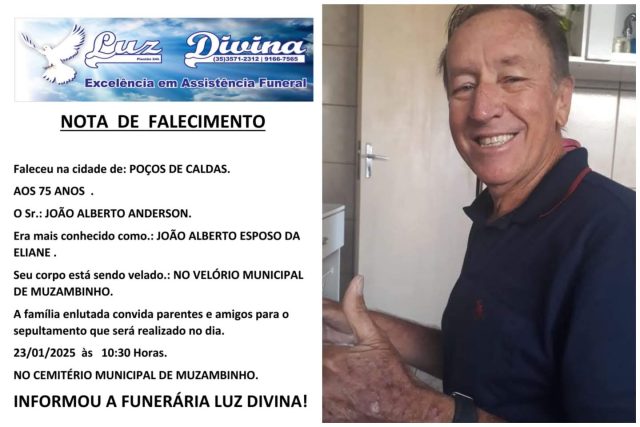 Mais Artigos DestaquePolítica Conheça o processo de verificação da situação eleitoral no Brasil DestaqueObituário Faleceu aos 65 anos o Sr. Pedro Silva Rita Magalhães AgronegócioDestaque Café em Foco, 17/03/26, Cotações e Informações da CafeiculturaDestaqueObituárioFaleceu aos 75 anos o Sr. João Alberto Anderson Redação23 de janeiro de 20251min0Informou a Funerária Luz Divina A família enlutada, nossos sinceros sentimentos de pesares, que Deus os abençoe e conforte. Post Views: 700EnterroFuneráriaLuz DivinamorteobituárioSepultamentoVelório