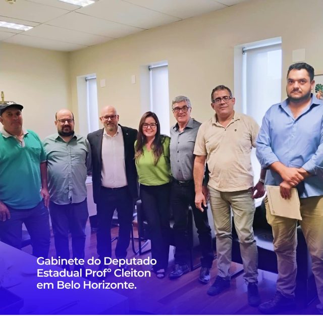 O Prefeito de Muzambinho, Paulo Magalhães, esteve em Belo Horizonte no dia 5 de fevereiro, acompanhado pelo Vice-Prefeito Carlos Bócoli (Juninho Bócoli), pelo Secretário de Governo Orielton Djalma (Heto), pela Diretora do CREAS Sueli Frutuoso e pelos vereadores Otávio Sales e Carlão Miranda. O grupo participou de uma reunião estratégica com os Deputados Estaduais Professor Cleiton e Arnaldo Silva, trazendo novidades e perspectivas positivas para o município.