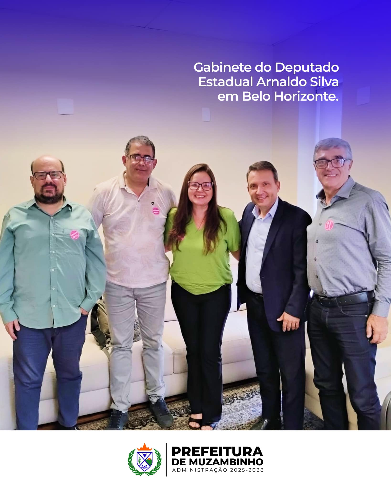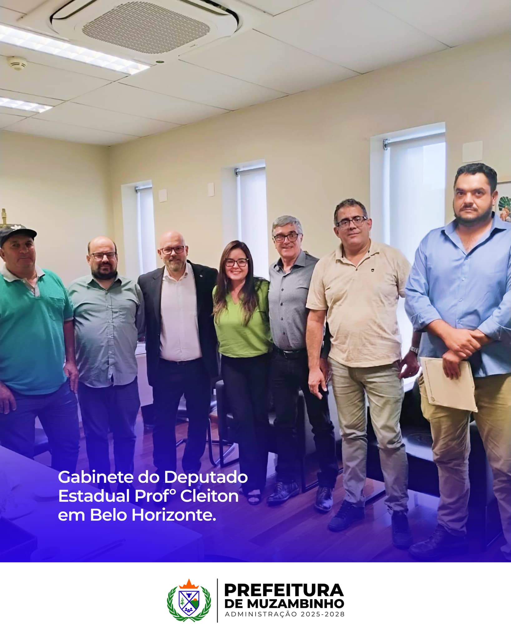 O Prefeito de Muzambinho, Paulo Magalhães, esteve em Belo Horizonte no dia 5 de fevereiro, acompanhado pelo Vice-Prefeito Carlos Bócoli (Juninho Bócoli), pelo Secretário de Governo Orielton Djalma (Heto), pela Diretora do CREAS Sueli Frutuoso e pelos vereadores Otávio Sales e Carlão Miranda. O grupo participou de uma reunião estratégica com os Deputados Estaduais Professor Cleiton e Arnaldo Silva, trazendo novidades e perspectivas positivas para o município.