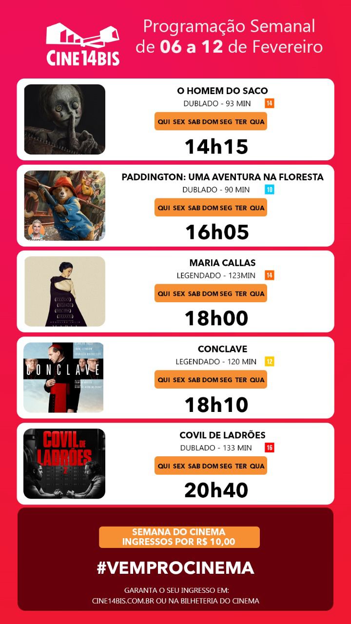 Mais Artigos AgronegócioDestaque Café em Foco, 12/01/26, Cotações e Informações da Cafeicultura DestaqueEconomia INSS divulga novas faixas de contribuição; veja os descontos DestaqueDiversosNossa Cidade Muzambinho abre inscrições para curso gratuito de Marketing Pessoal para VendedoresCulturaDestaqueParceirosProgramação imperdível no Cine 14 Bis!! Redação9 de fevereiro de 20251min011 filmes. Ingressos a R$ 10,00 Post Views: 32314 BisFilme