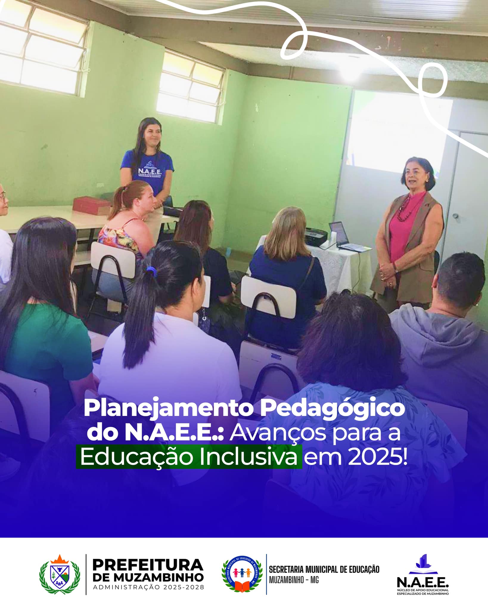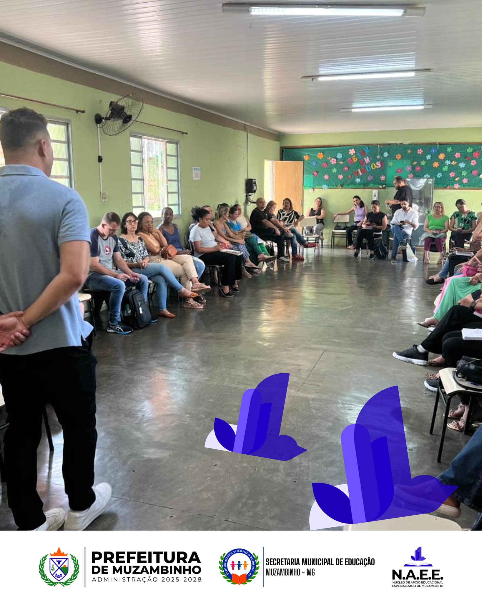 No dia 6 de fevereiro, a sede da Escola Municipal Frei Florentino foi palco do planejamento pedagógico do Núcleo de Apoio Educacional Especializado (N.A.E.E.), iniciativa da Prefeitura Municipal de Muzambinho voltada para o fortalecimento da educação inclusiva na rede municipal. O encontro reuniu professores regentes, profissionais de apoio, coordenadores e diretores da zona urbana e rural, todos os quais atuarão ao longo de 2025.