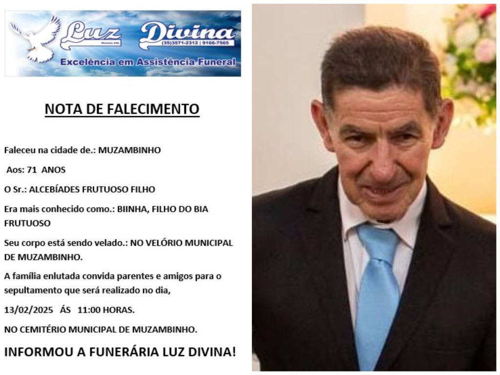 Mais Artigos DestaqueExecutivoNossa CidadeParceirosSaúde Muzambinho amplia frota da saúde com a entrega de 11 novos veículos DestaqueObituário Faleceu aos 88 anos a Sra. Francisca Cândida Russi DestaqueExecutivoNossa Cidade Defesa Civil realizará corte preventivo de palmeiras no Alto do Anjo na próxima segundaDestaqueObituárioFaleceu aos 71 anos o Sr. Alcebíades Frutuoso Filho Redação12 de fevereiro de 20251min0Informou a Funerária Luz DivinaA família enlutada, nossos sinceros sentimentos de pesares, que Deus os abençoe e conforte. Post Views: 305EnterroFuneráriaLuz DivinamorteobituárioSepultamentoVelório