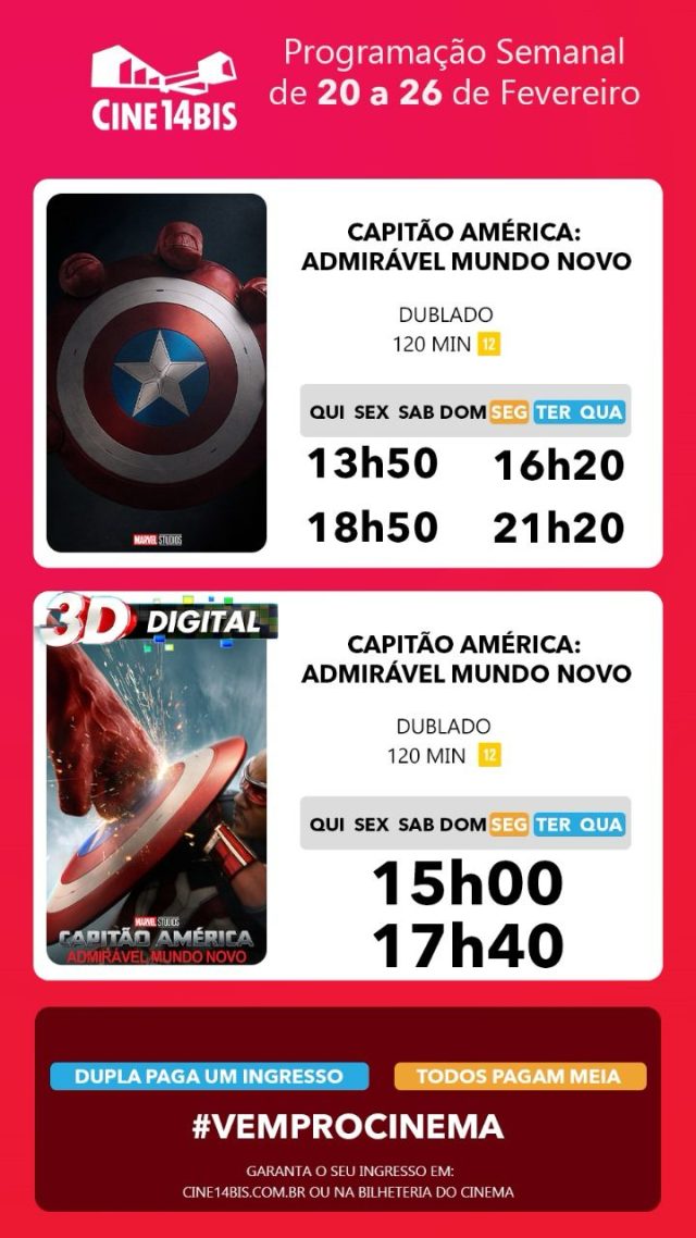 Ingressos: Disponíveis na bilheteria e no site oficial do Cine 14 Bis.