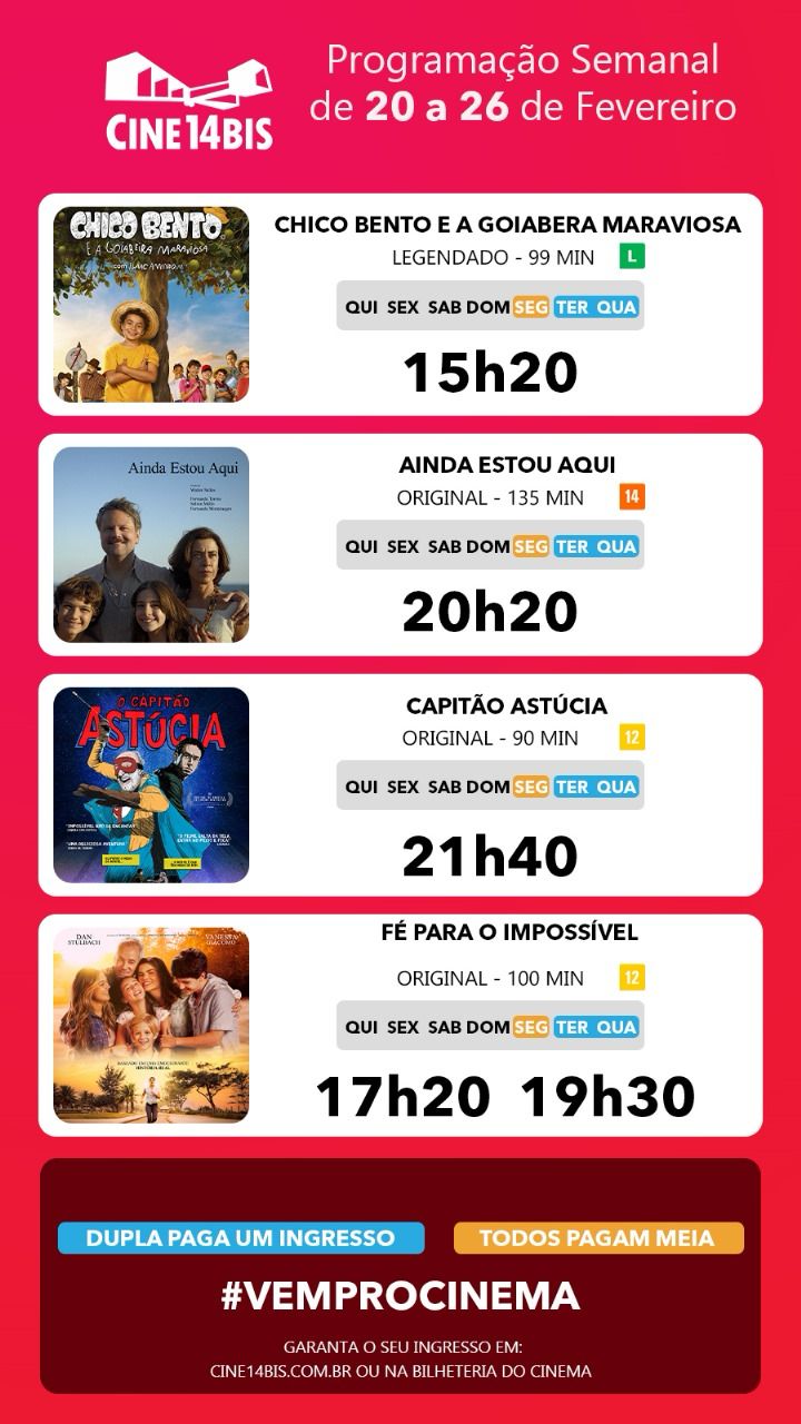 Ingressos: Disponíveis na bilheteria e no site oficial do Cine 14 Bis.