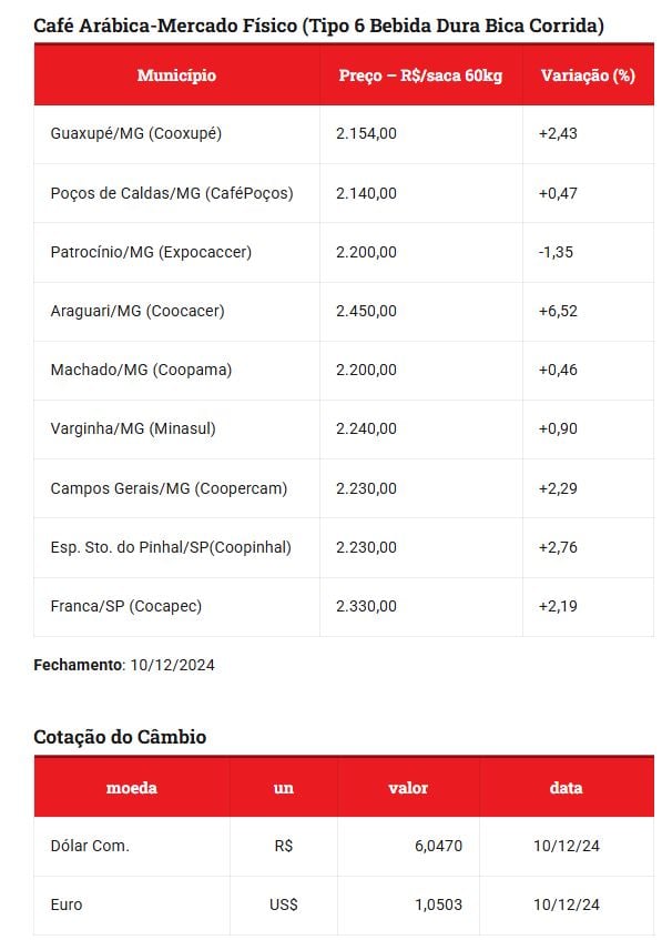 A valorização do café pode ser atribuída a diversos fatores, incluindo a crescente demanda global, problemas climáticos que afetaram a produção em importantes regiões cafeeiras, além da influência do câmbio, já que o café é uma commodity negociada internacionalmente. A escassez de oferta em algumas safras pode ter sido determinante para a forte alta registrada nos últimos meses.